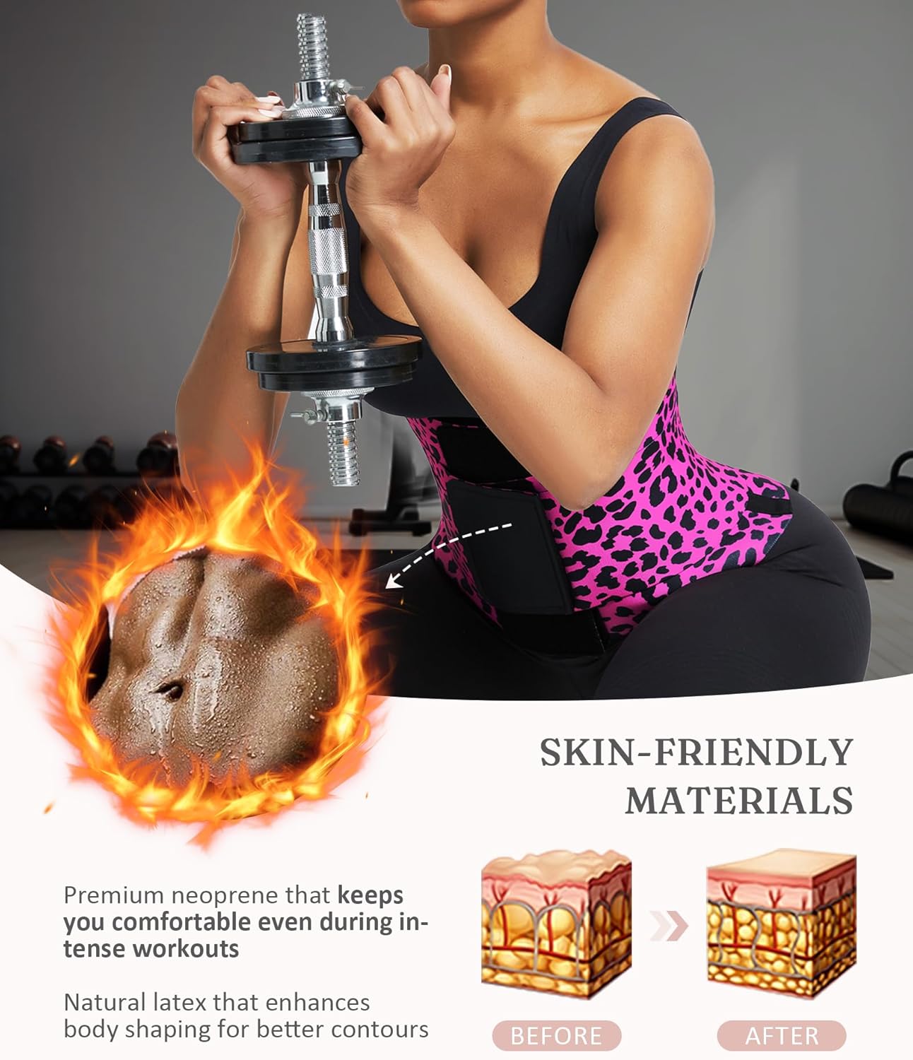 - Premium Stretch Fabric: Our waist trainer crafted from a blend of polyamide and spandex for targeted support and comfortable compression. The breathable material promotes natural heat retention during activity. Attention:Contains Latex Fiber. May cause allergic reactions in sensitive individuals. If you are allergic to latex or if you are not sure about this, please consult to your doctor for instructions before usage.