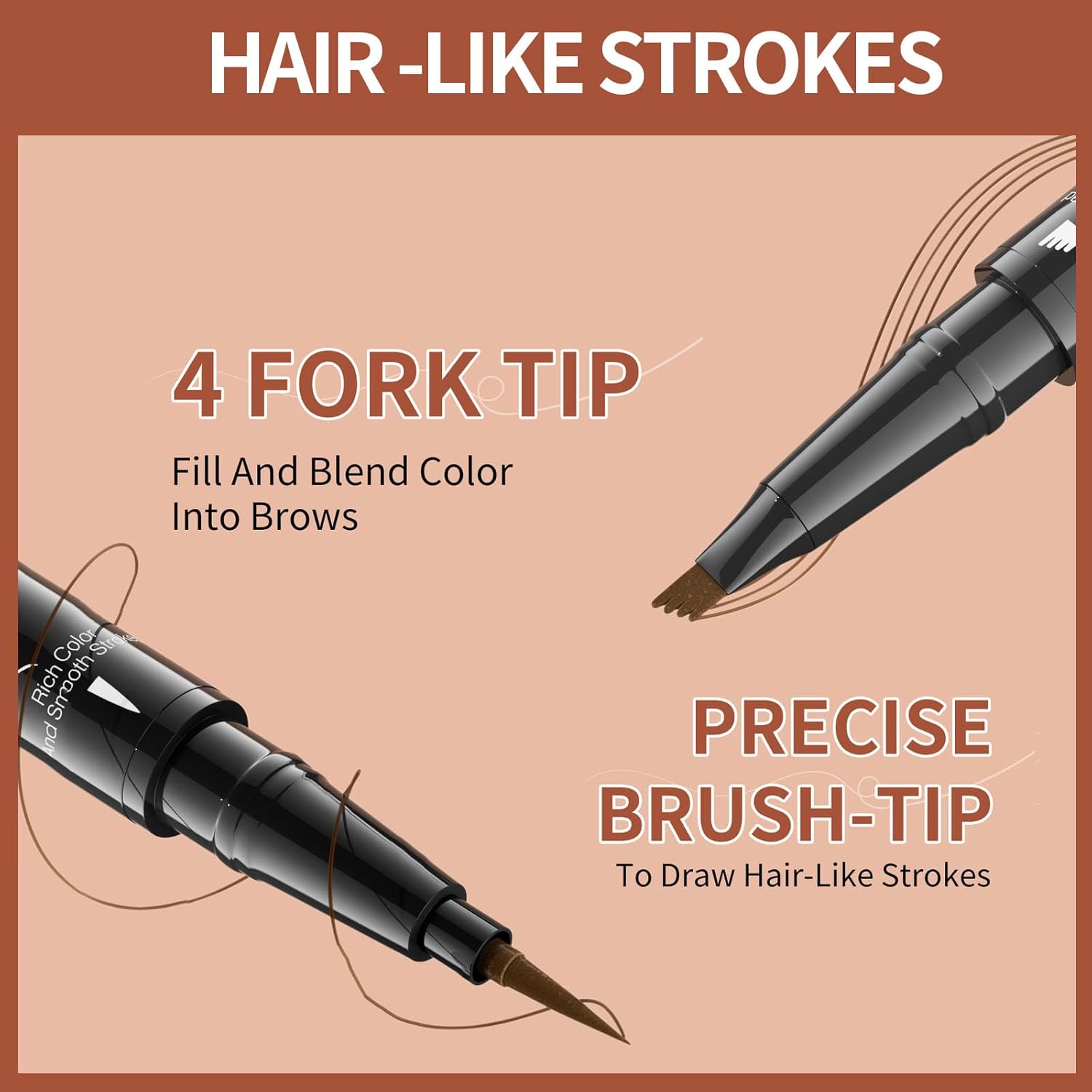 - 2-IN-1 BROW PEN: Achieve natural-looking brows with our dual-ended brow pen! The precise brush-tip creates hair-like strokes, while the 4-fork tip effortlessly fills in sparse areas and blends color for a flawless finish