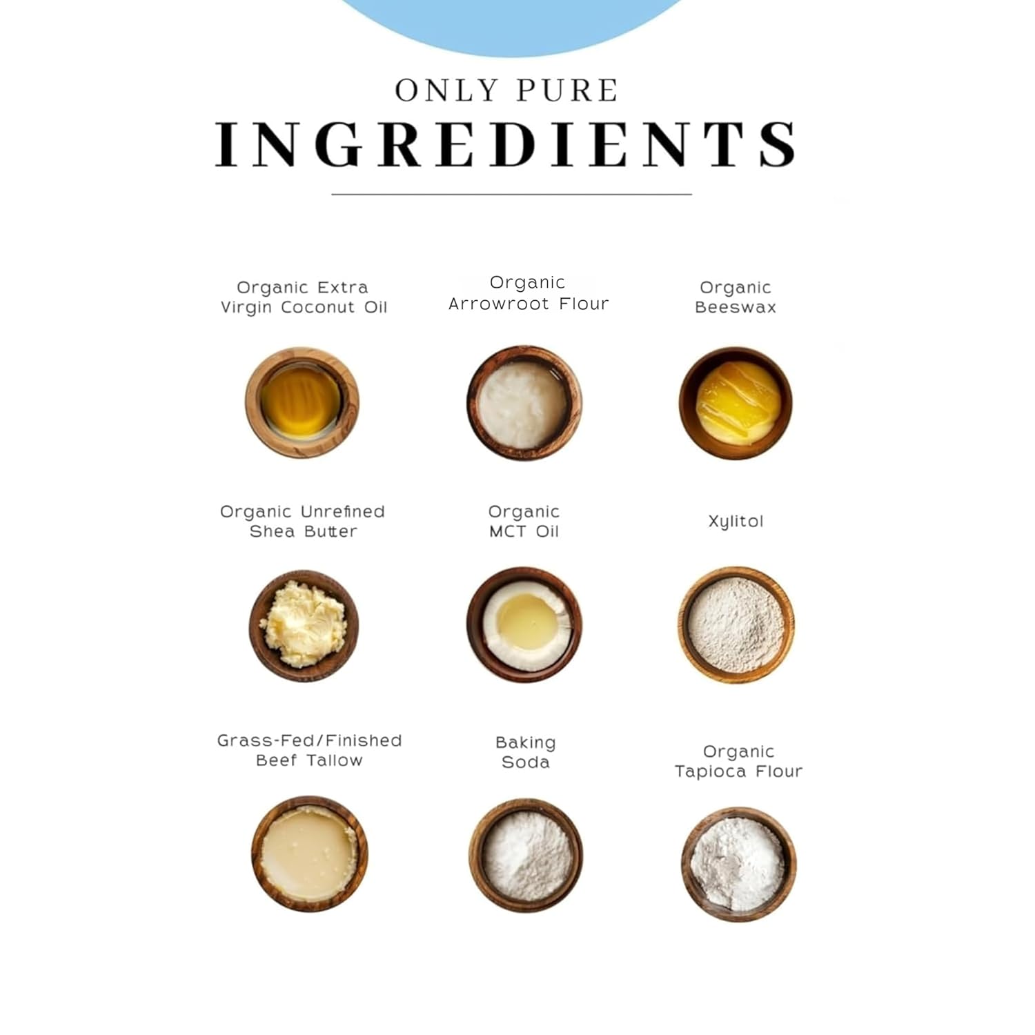 - Nourishing Natural Ingredients: Thoughtfully formulated with 100% grass-fed beef tallow, organic extra virgin coconut oil, unrefined shea butter, and beeswax. Each ingredient is carefully selected to support your skin's natural balance and provide gentle care.