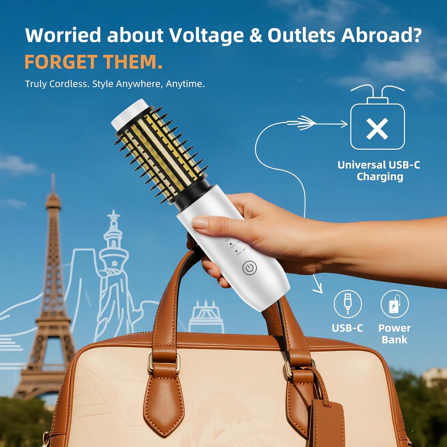 - 【Your Cordless Travel & Gym Companion】 Free yourself from outlets and tangled cords. A compact, TSA-friendly heated round brush is a new travel essential. Fully cordless with universal USB-C charging, it’s ready for a weekend getaway, international trip, or post-workout glam-up. Experience the freedom of flawless hair, anywhere.