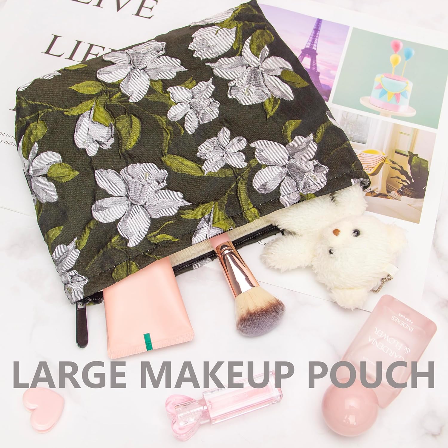 PAZIMIIK Makeup Bag Large Cotton Zipper Pouch for Purse Travel Canvas Make Up Organizer for Women Cosmetic,Brocade Floral Black