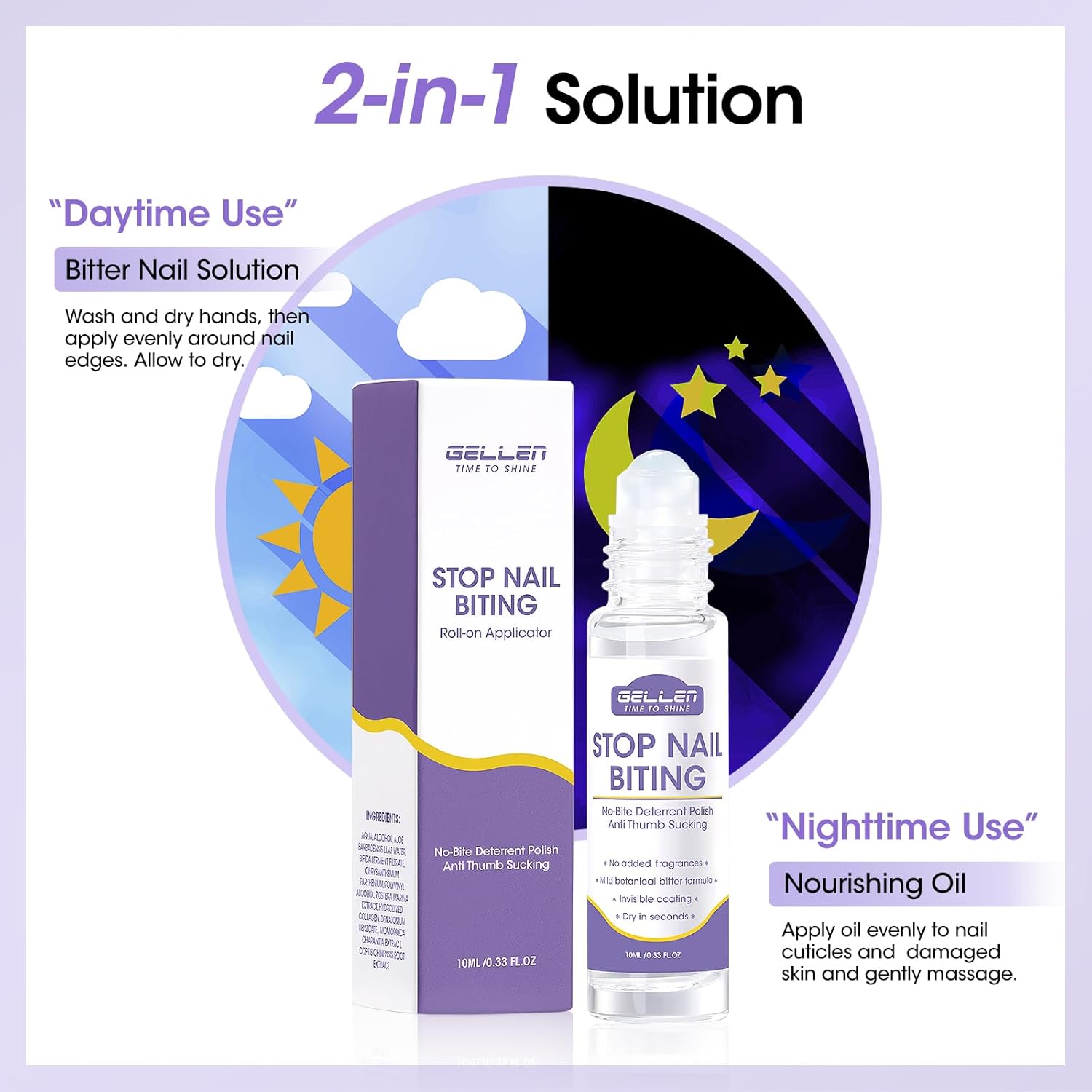 Gellen Nail Biting Treatment for Kids & Adults, Roll-On Stop Thumb Sucking Deterrent, 10ml Nail Biting Prevention, Quick Dry & Water-Resistant No Bite Nail Polish, Nail Care Solution