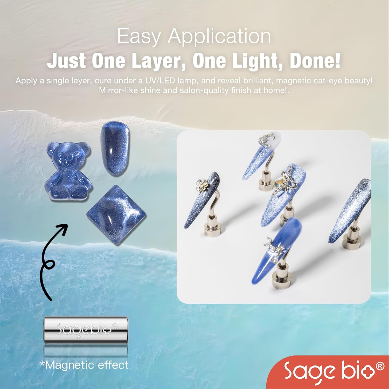 - Multifunctional Formula: SAGEBIOโs Cat Eye Gel Nail Polish combines both the base and color in one easy-to-use formula. No need for additional base or top coats, streamlining your nail art routine.