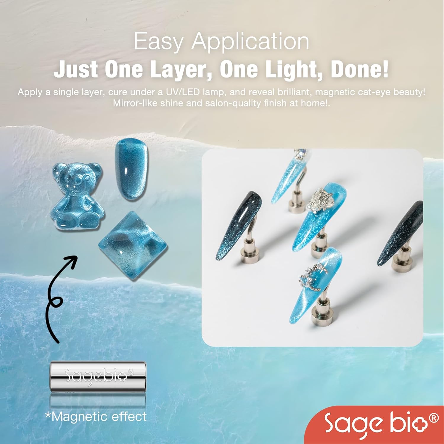 - Multifunctional Formula: SAGEBIOโs Cat Eye Gel Nail Polish combines both the base and color in one easy-to-use formula. No need for additional base or top coats, streamlining your nail art routine.