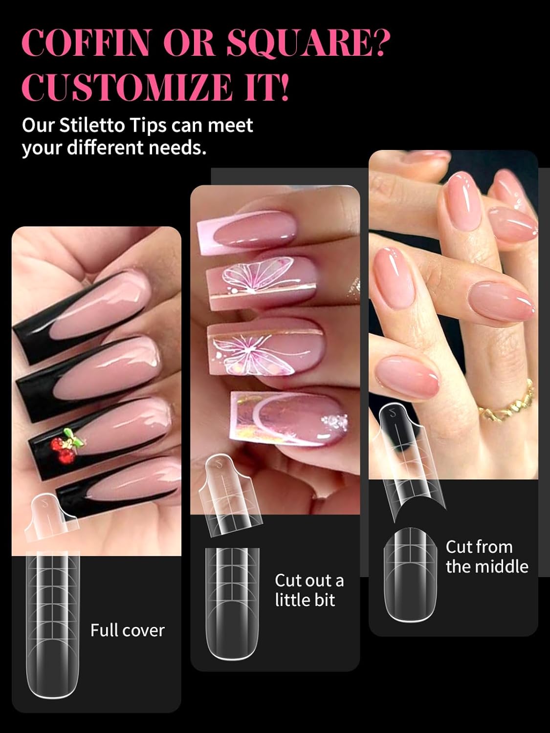 - 【Nail Form Mold with 15 Sizes】150pcs stiletto clear dual forms for poly nail gel offers 15 different nail sizes , and each size of long nail tips is separated by a small grid, a total of 15 grids, so they're easy and convenient to choose the suitable size to meet your nail's need.