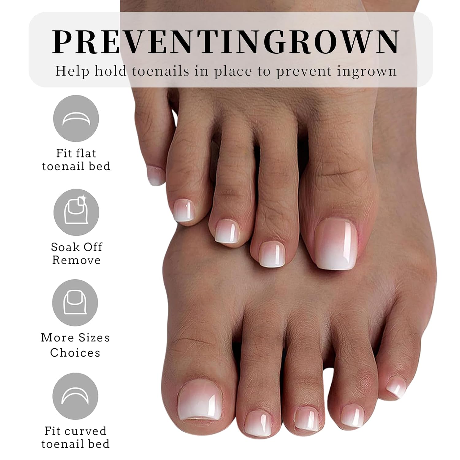Ombre Press On Toenails - 240Pcs False Nails for toe, White Nail Tips Pink White Gradient Soft Gel False Nail Tips Salon Perfect Fake Nails Kit Extensions DIY