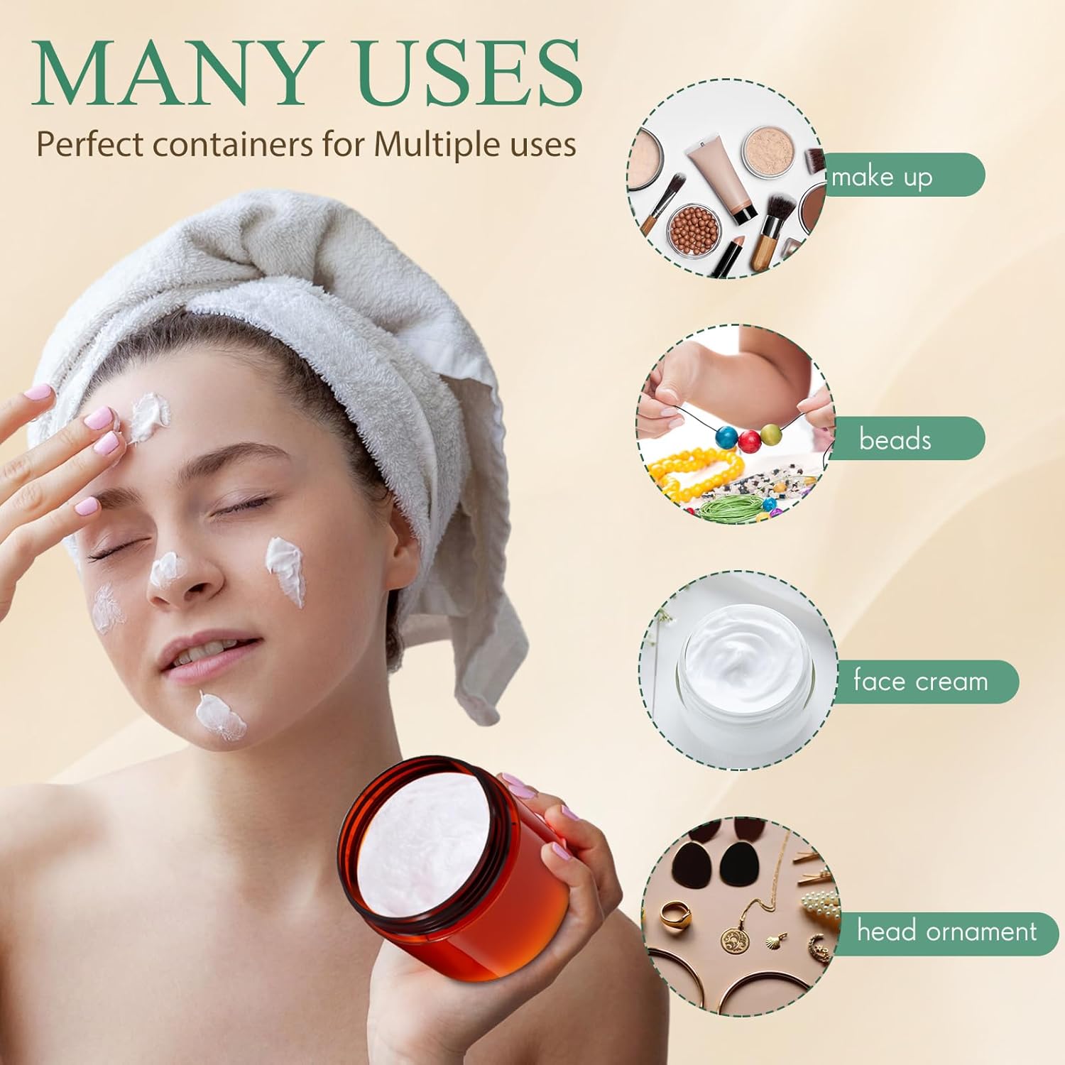 SATINIOR 24 Pieces Empty Clear Plastic Jars with Lids Round Storage Containers Wide Mouth for Beauty Product Cosmetic Cream Lotion Liquid Butter Craft and Food(Amber Lid,6 oz)