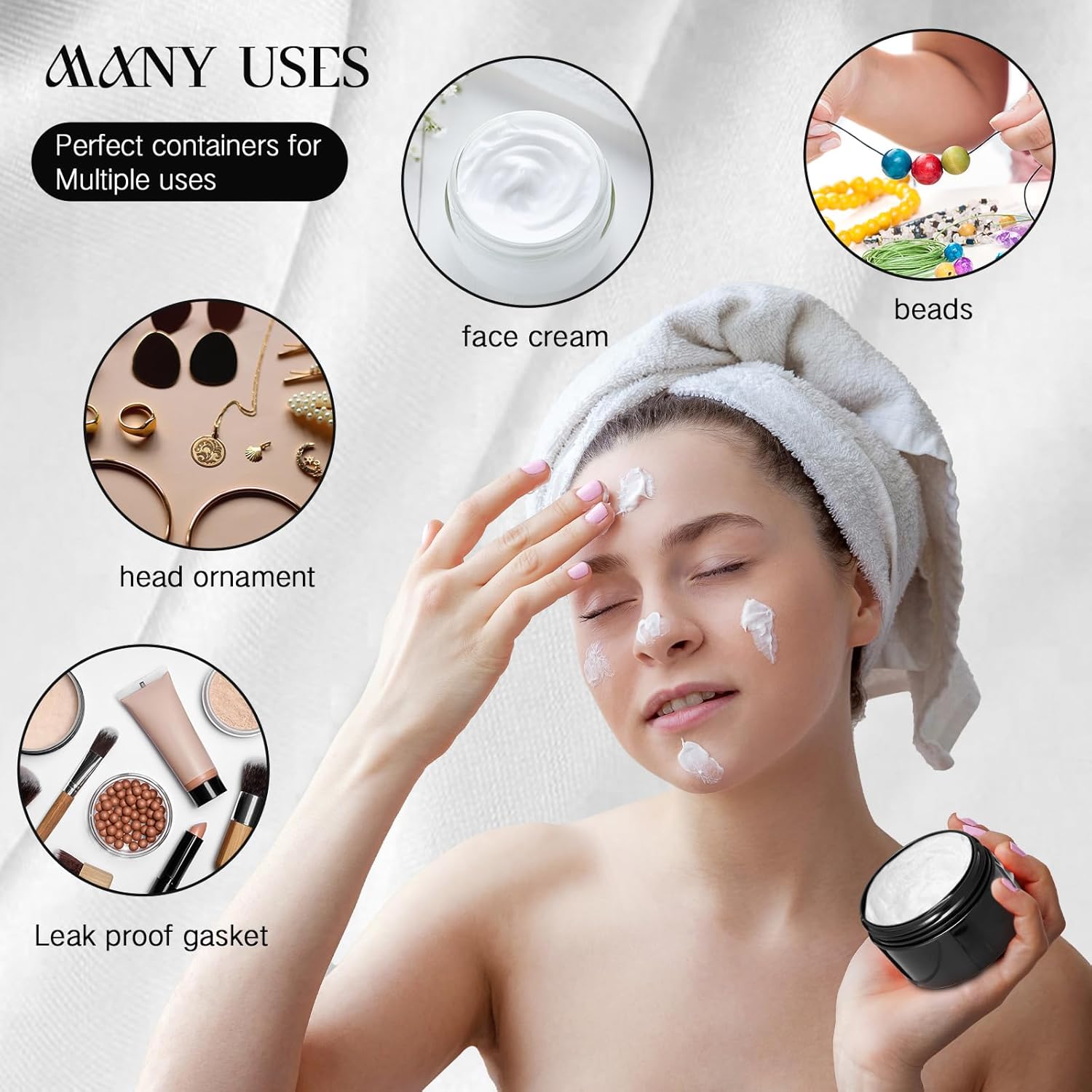 SATINIOR 24 Pieces Empty Clear Plastic Jars with Lids Round Storage Containers Wide Mouth for Beauty Product Cosmetic Cream Lotion Liquid Butter Craft and Food(Black,4 oz)