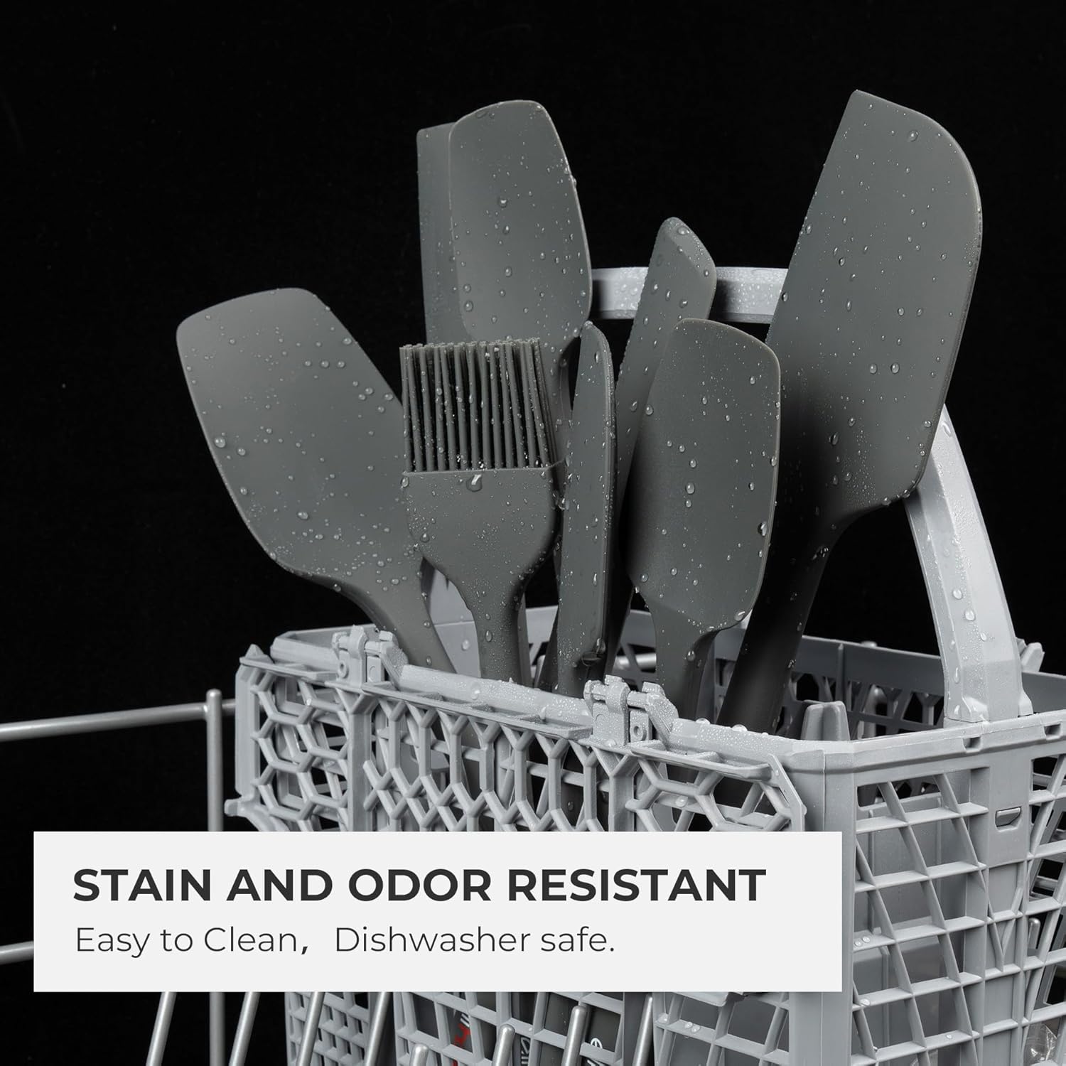 Elihome Skinny Silicone Spoonula - Non-Stick Heat Resistant Silicone Scraper Spatula for Mixing, Serving, Scraping, Stirring, and More - 11 Inch, Dark Grey