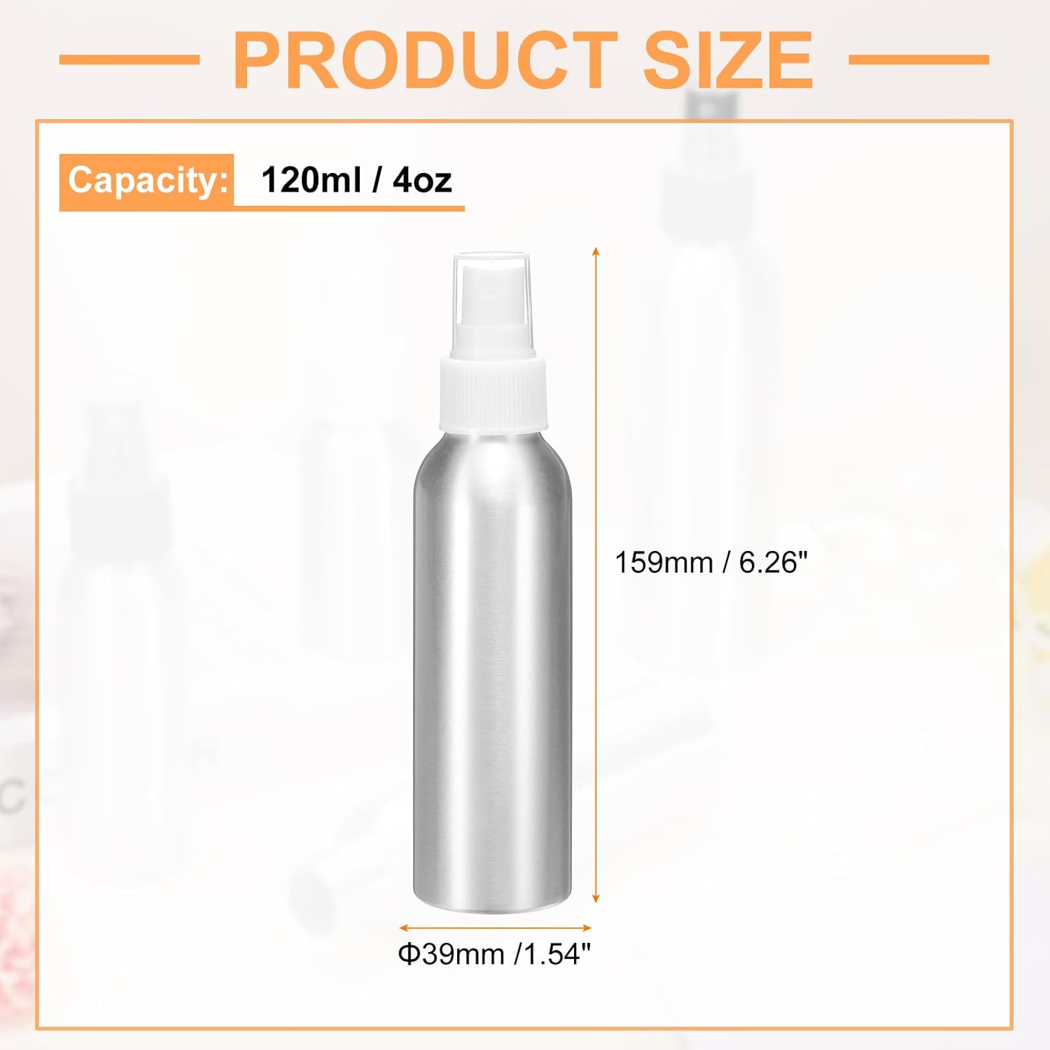 HARFINGTON 3pcs Aluminum Fine Mist Spray Bottles 120ml/4oz Metal Small Liquid Alcohol Refillable Travel Container with White Plastic Nozzle Cap for Perfume Skincare Cosmetic Storage Bottle