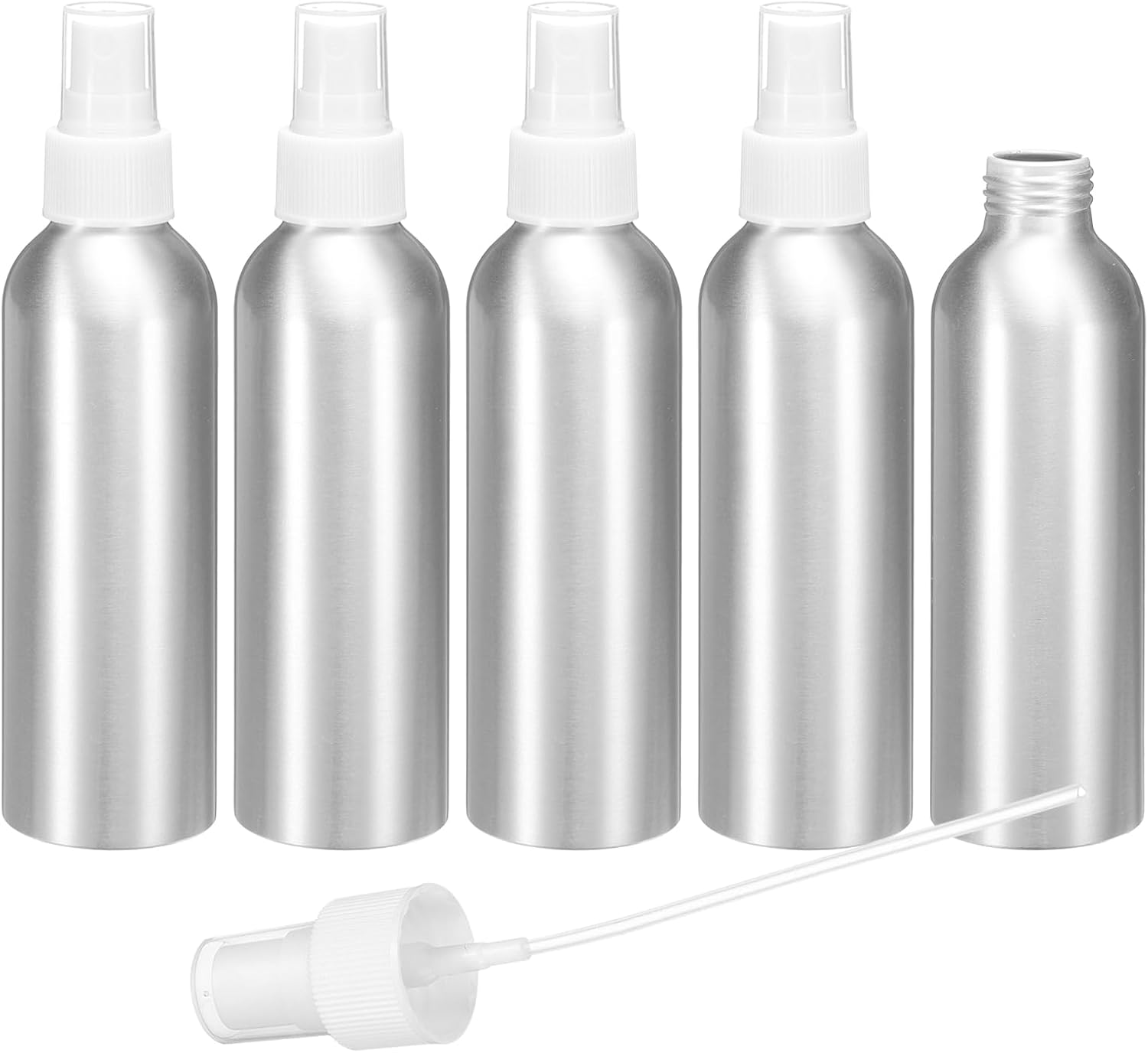 HARFINGTON 5pcs Aluminum Fine Mist Spray Bottles 150ml/5oz Metal Small Liquid Alcohol Refillable Travel Container with White Plastic Nozzle Cap for Perfume Skincare Cosmetic Storage Bottle