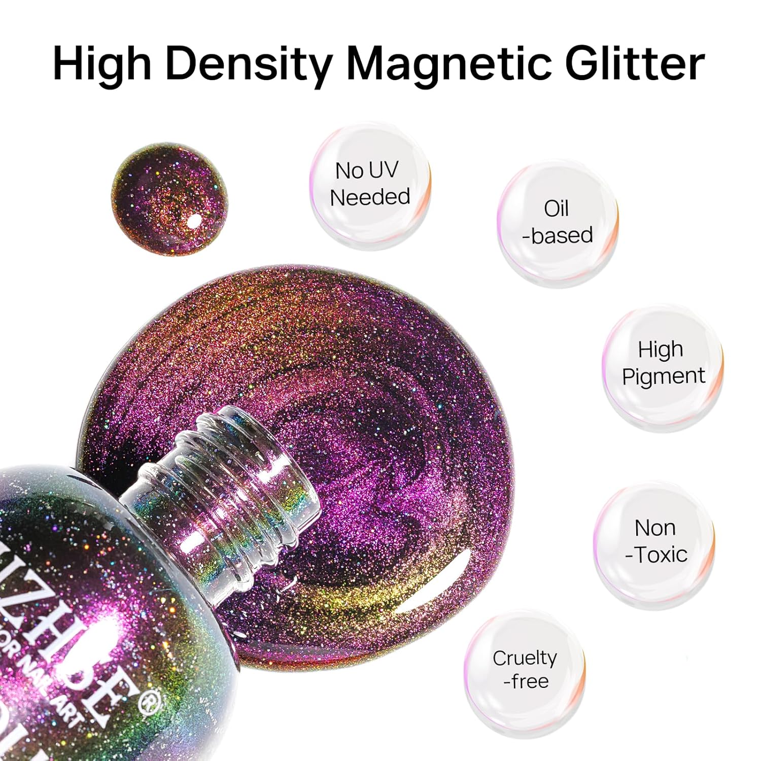 - 9D Cat Eye Nail Polish: 1*15ml(0.5fl.oz) larger bottle magnetic nail polish. Suggest to apply black nail polish as base color, that will get obvious galaxy effect. Perfect for daily wear, and any occasion where you want to add magic color to your look. Highly versatile and easy to apply.