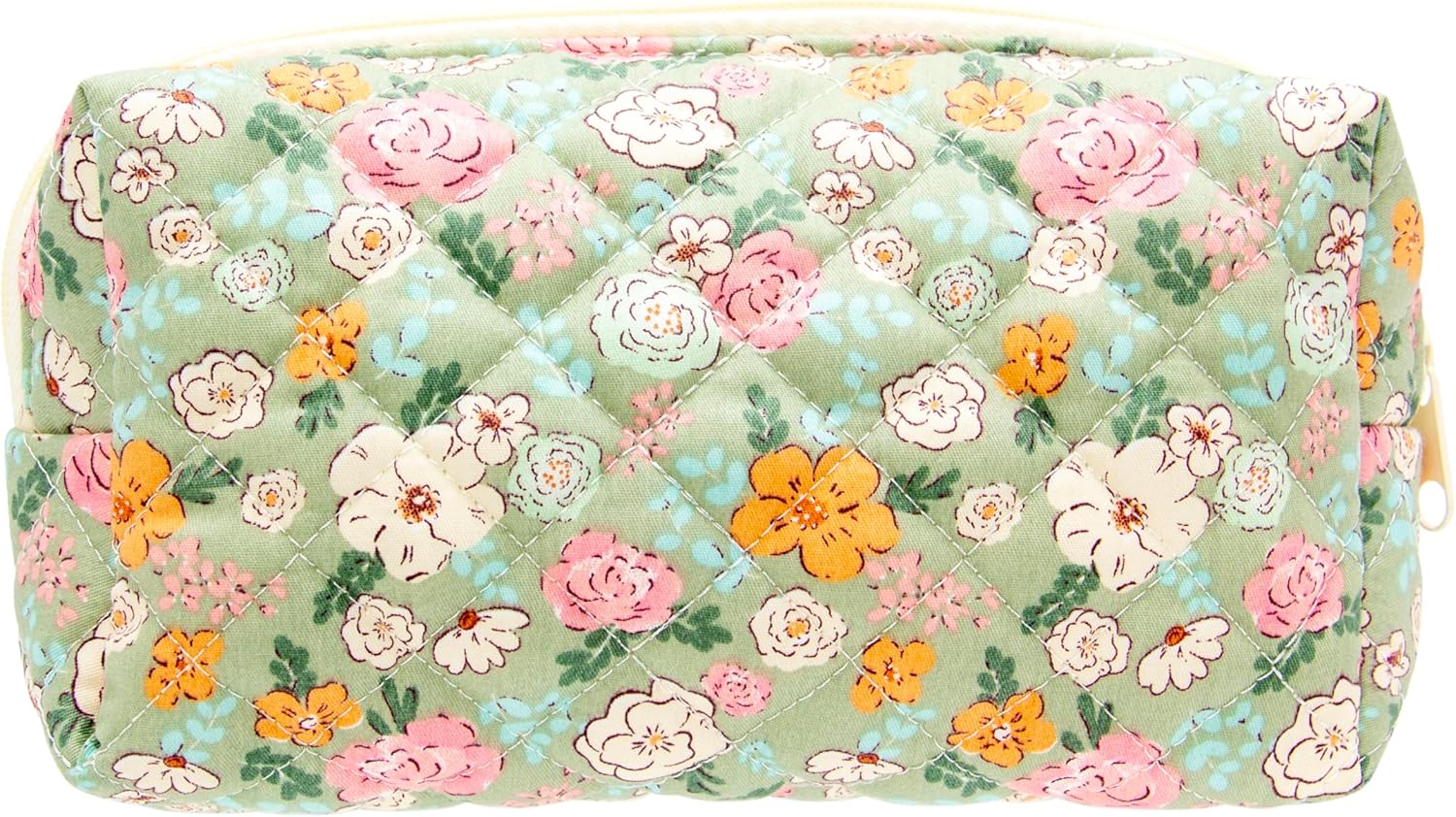 PAZIMIIK Vintage Quilted Makeup Bag Cosmetic Pouch for Brushes Pencils and Travel Make Up Accessories for Women and Girls Floral Green