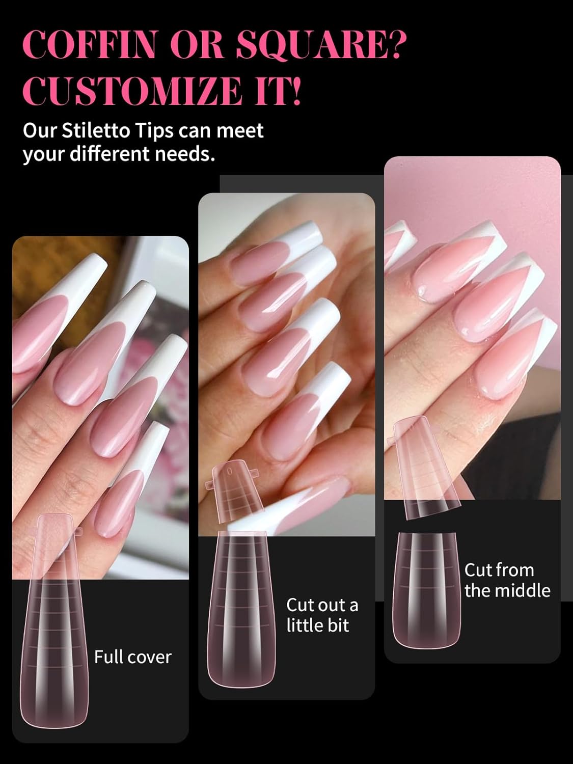 - 【Nail Form Mold with 12 Sizes】96pcs stiletto clear dual forms for poly nail gel offers 12 different nail sizes , and each size of long nail tips is separated by a small grid, a total of 12 grids, so they're easy and convenient to choose the suitable size to meet your nail's need.