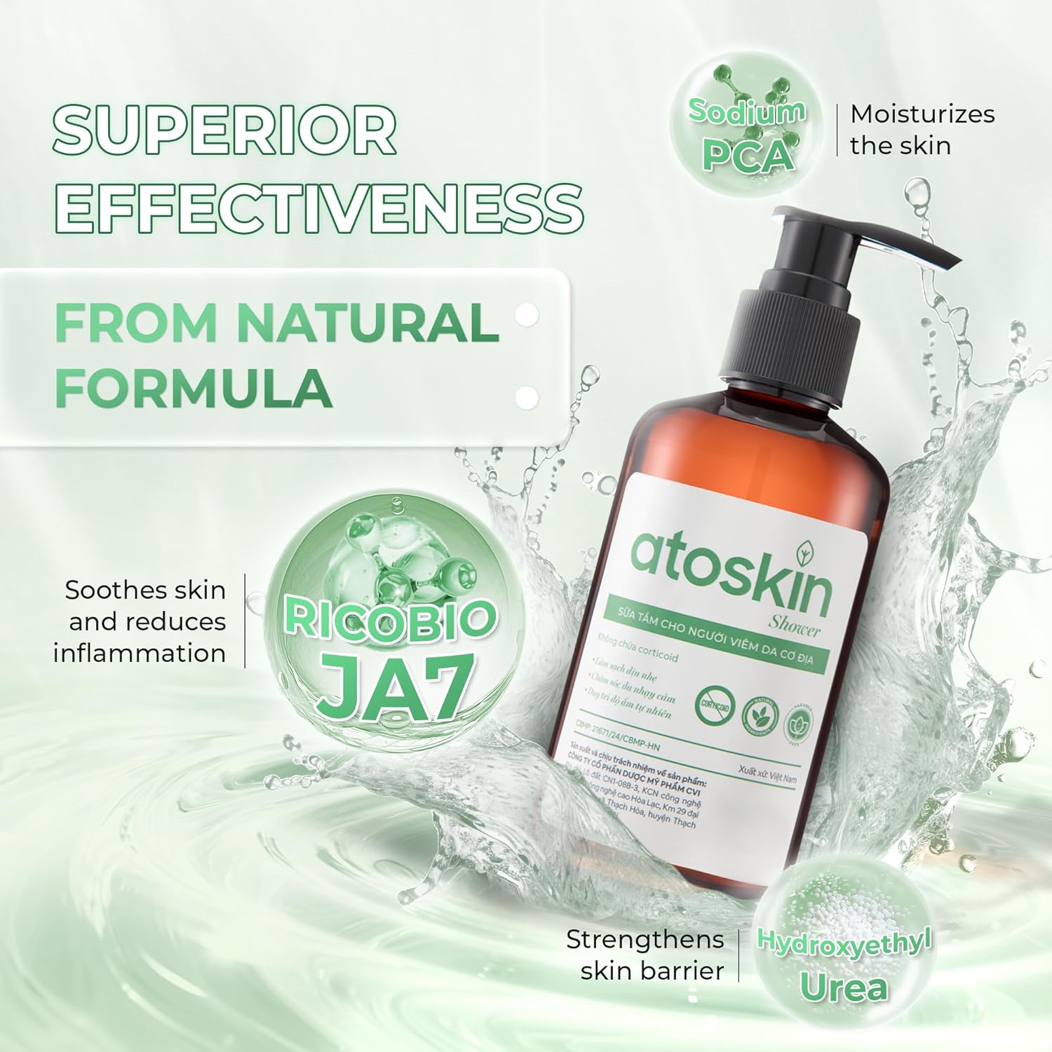 Atoskin Shower Gel (2 Pack) - for Eczema, Psoriasis, Dermatitis, and Anti-Itch Relief - Maximum Strength for Both Kids and Adults (13.6 oz)
