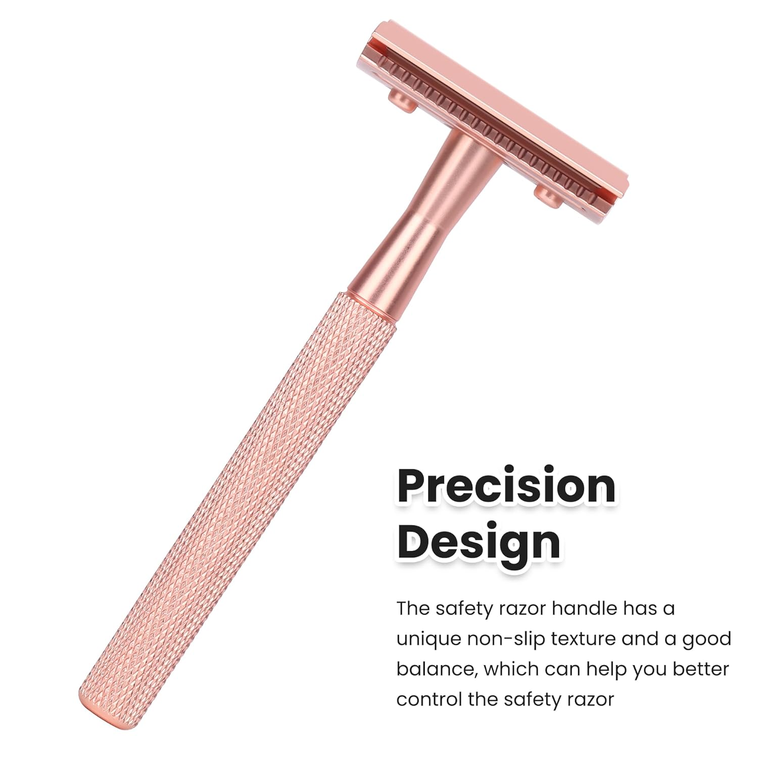 Single Blade Razor For Women With 10 Premium Stainless Steel Reusable Safety Razor Blade, Woman One Blade Razor, Rose Gold