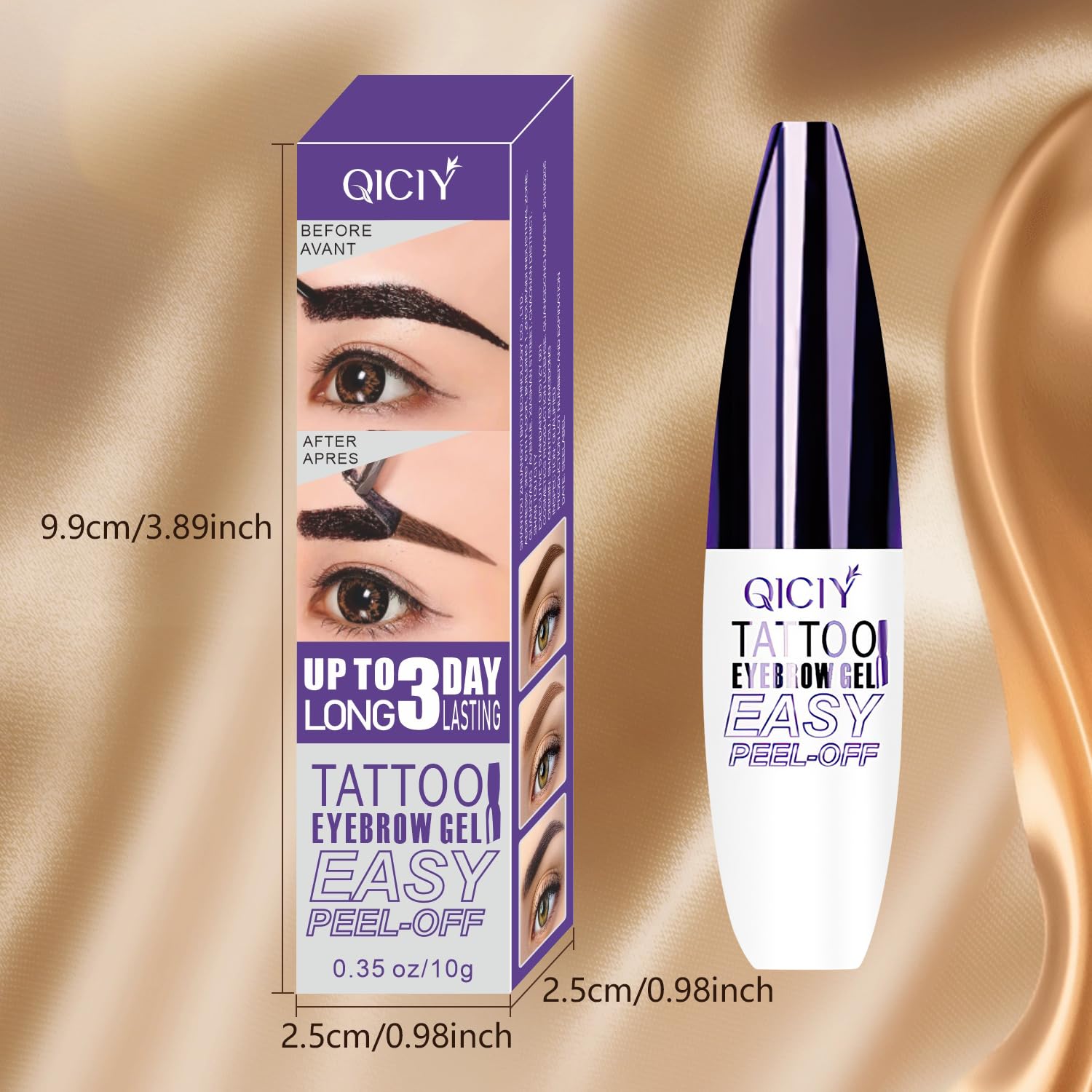 2PCS QICIY Easy Peel-Off Eyebrow Gel- QICIY Peel Off Tattoo Eyebrow Eye Brow Tint Waterproof & Sweatproof For All Skin Tones (Dark Brown)