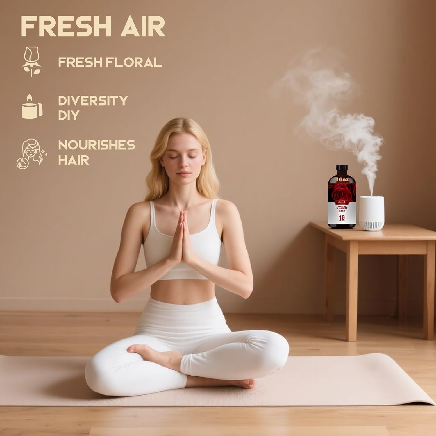 Rose Fragrance Oil-Rose Essential Oil 16.33oz (490ml)-100% Pure Natural Scent for Diffusers, Candles, Soap Making & Aromatherapy-Relaxing Home & Gift Essential Oil for Bath, Massage