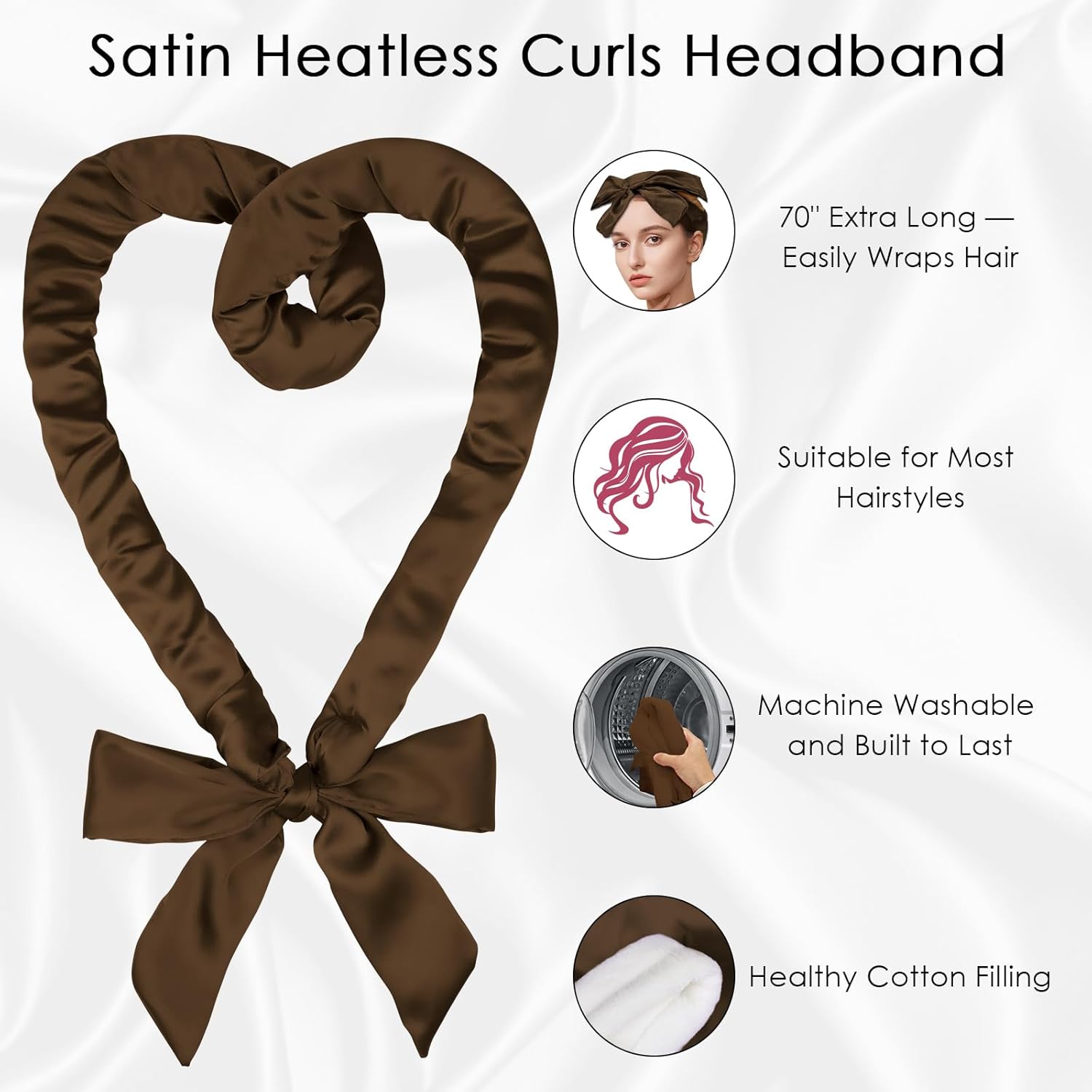 - Heatless Curls: This 70" long overnight curls headband features a non-heating design, avoiding heat damage to the hair, making it perfect for use while sleeping. Enjoy a comfortable sleep and wake up to beautiful, healthy curls and heatless waves