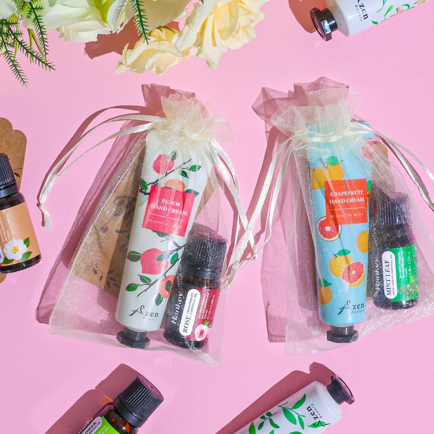 AZEN 30 Sets Bulk Gifts, Hand Cream and Essential Oils Bulk Set with Organza Bag Thank You Card, Baby Shower Wedding Gifts for Guests, Bridal Wedding Favors for Guests,Thank You Gifts for Women
