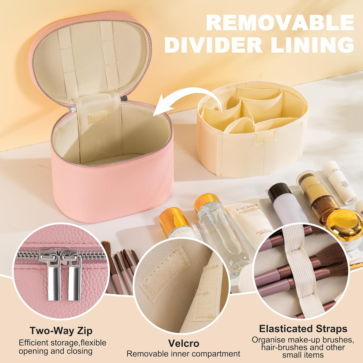 Makeup Bag Vanity Case Cosmetic Bag with Removable Divider Travel Toiletry Bag for Women Portable Make up Box Organizer, Pink
