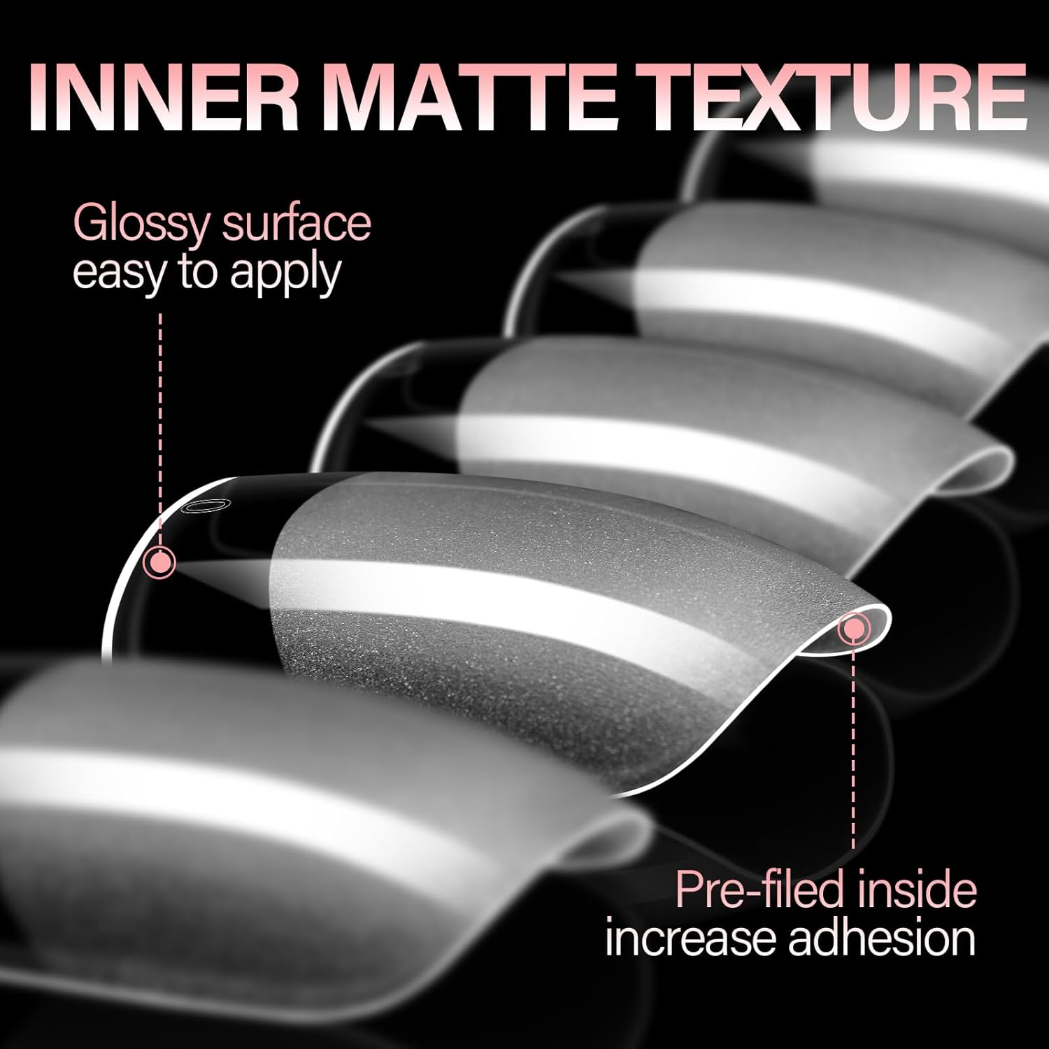 - 【Fits Nail Curvature, Natural & Comfortable, No Scratching】: Designed based on the natural curvature of nails, with edges finely polished to 0.1mm rounded corners. The fake nail fits the natural curve of your nails without air bubbles, ensuring no foreign body sensation and flexible finger movement. The smooth, burr-free surface prevents scratches on clothes or skin, making daily wear safer.