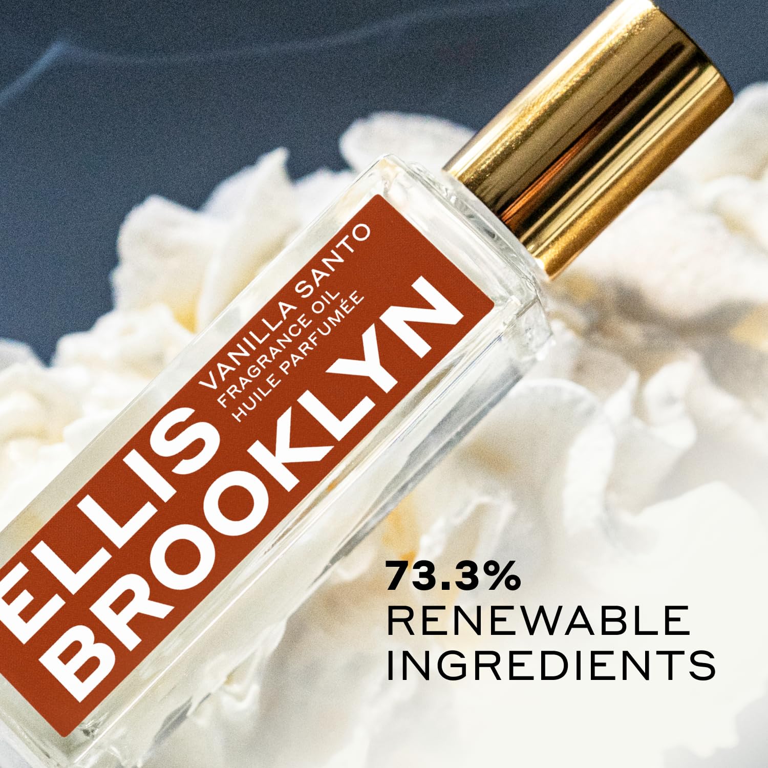 Ellis Brooklyn VANILLA SANTO Perfume Oil Roll-On for Women – Sensual Grown-Up Vanilla Fragrance – Woody & Smoky Perfume with Palo Santo, Cedarwood & Myrrh – Travel-Friendly Rollerball, 15ml