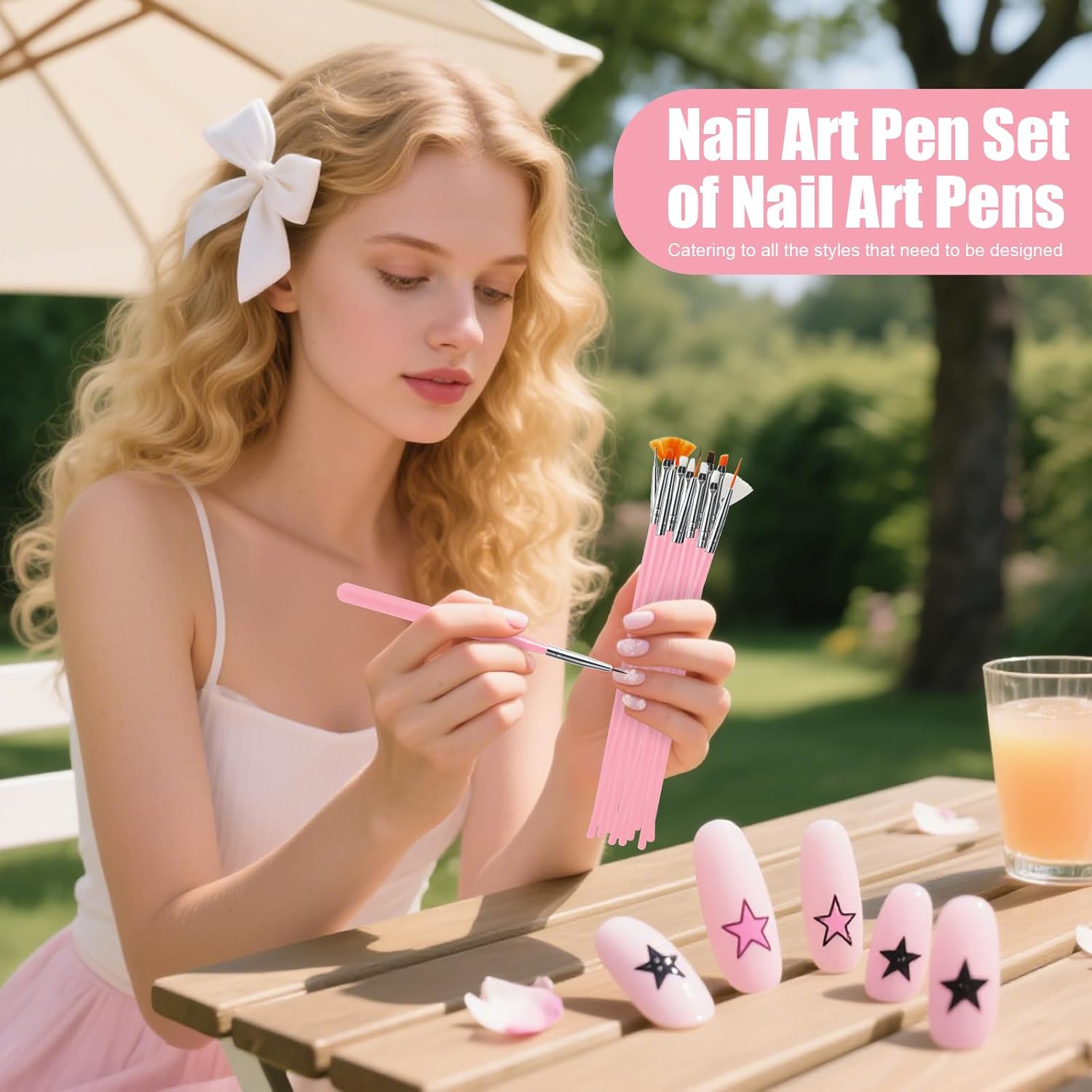 • Package contains:Include 15pcs pink nail art brushes set