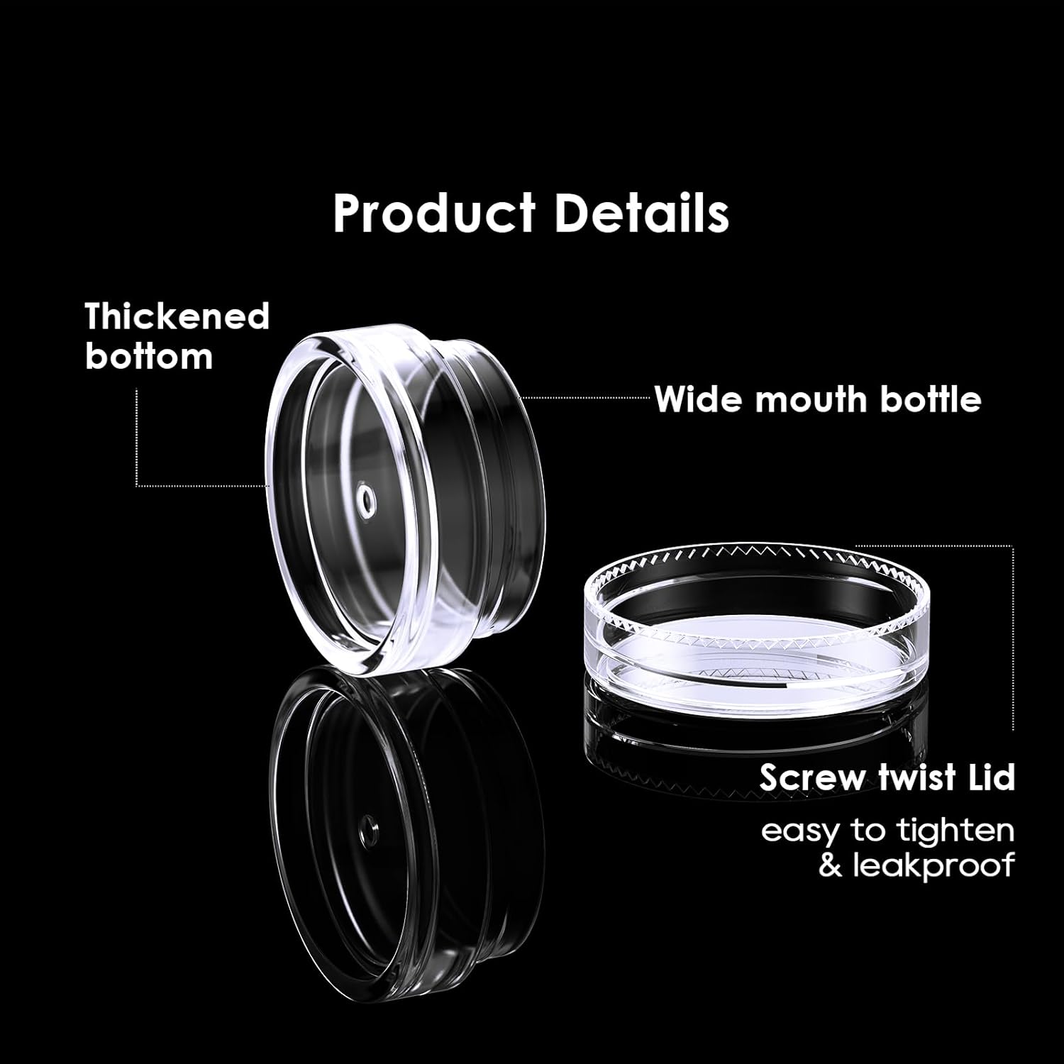 - ★【PERFECT SIZE】: These plastic jars are mini in size and lightweight allows them to go anywhere. Our 3ml small plastic jars with lids are perfect to fit in your handbag, purse, backpack