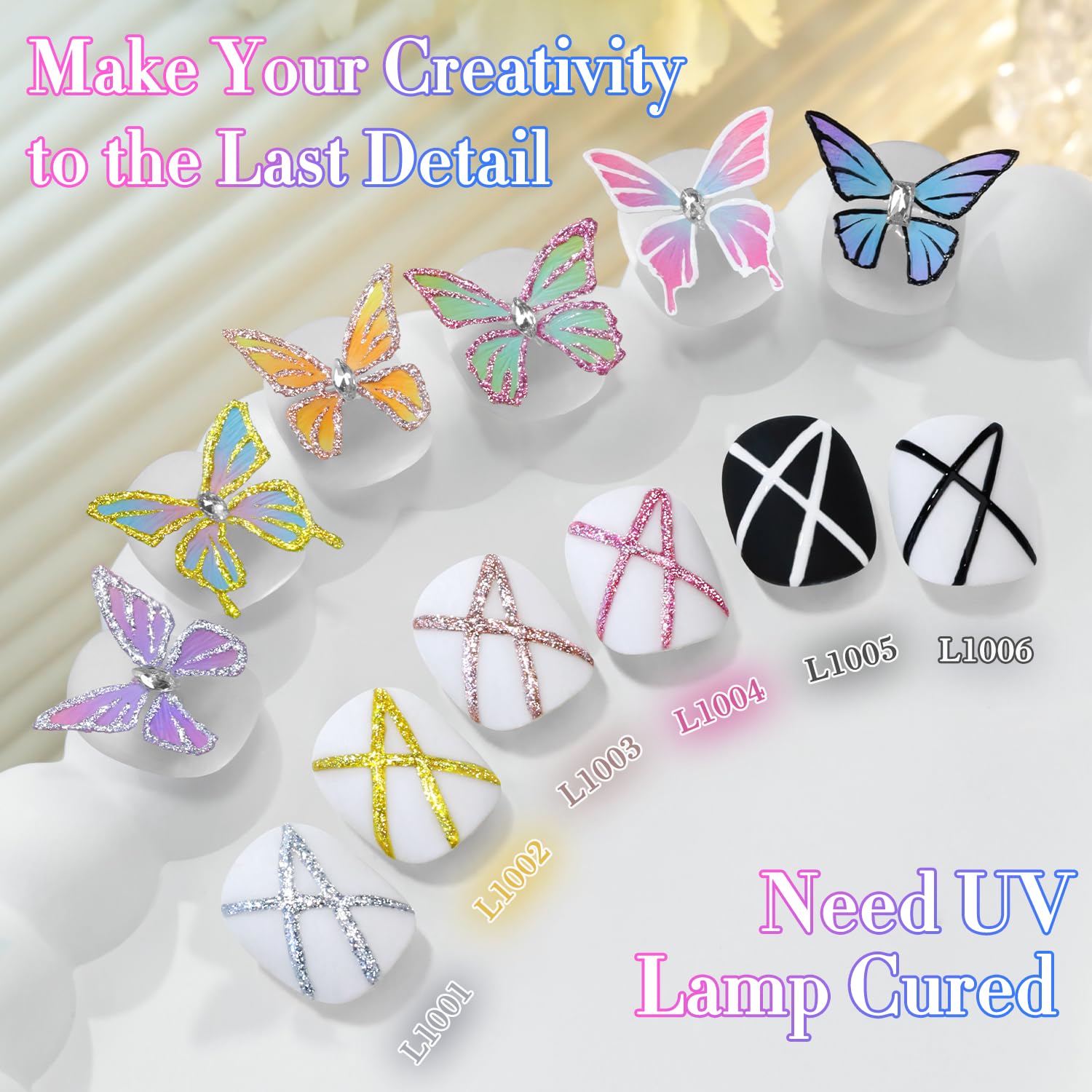 - Easy Application for Beginner :This glitter gel nail polishset need to be cured under LED nail lamp. These need to be cured under UV or LED Lamp for 60-131s. Please shake the bottle or warm it with hot water before use especailly in cold weather, to acheive a better effect.