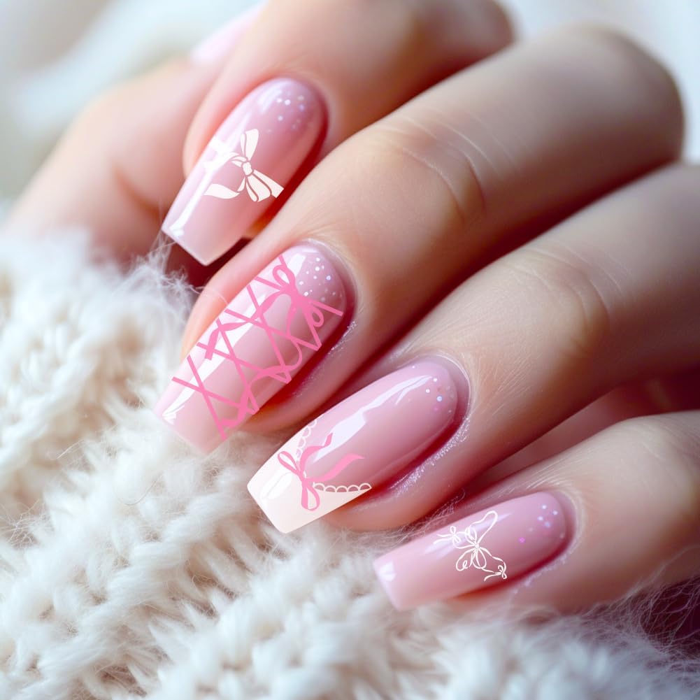3Pcs Bow Nail Stamping Plate Set Girly Elements Romantic Heart Shape Stainless Steel Nail Stamp Templates Clear Silicone Nails Stamping with Stamper Scraper for Manicure Printing