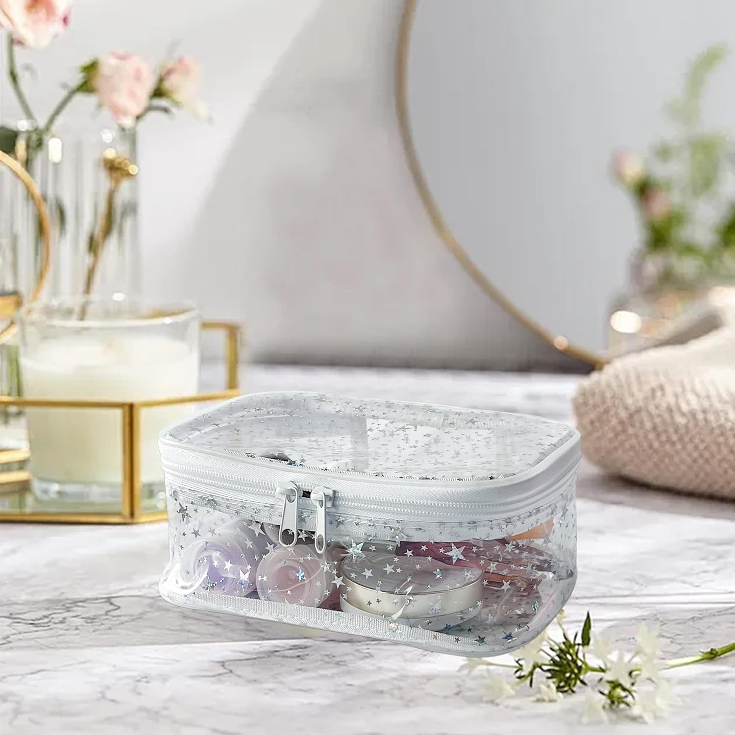 - 🌷【Double Metal Zippers】The zipper closure of our shiny makeup bag is smooth and secure,providing easy access to your belongings.You can quickly find and retrieve items within seconds,without the fear of them falling out or getting lost