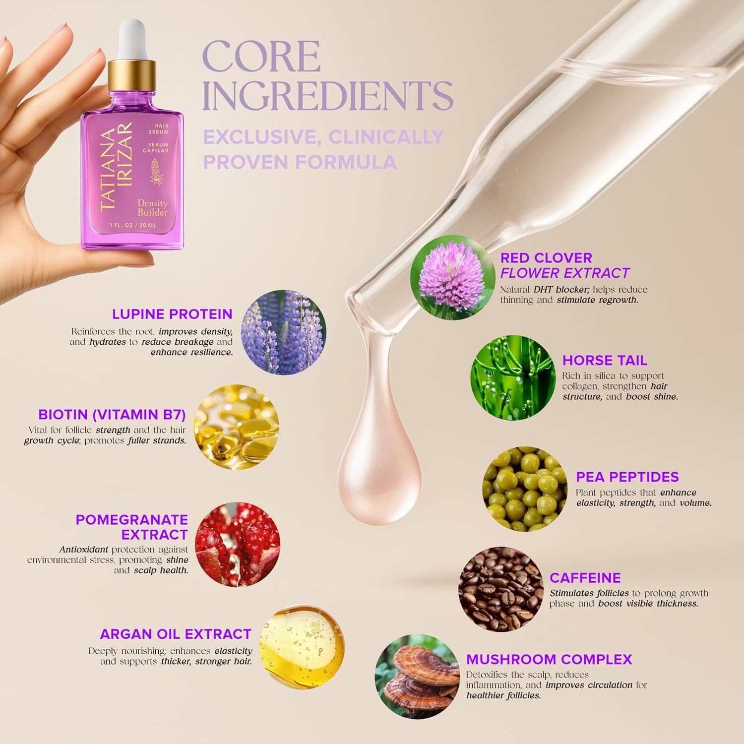 Hair Thickening Serum - Hair Density Serum Builder for Women Made in USA 30ml - Clinically Proven Scalp Treatment Non-Greasy - Natural Biotin, Argan & Pea Peptides - For Thinning, Fine or Damaged Hair