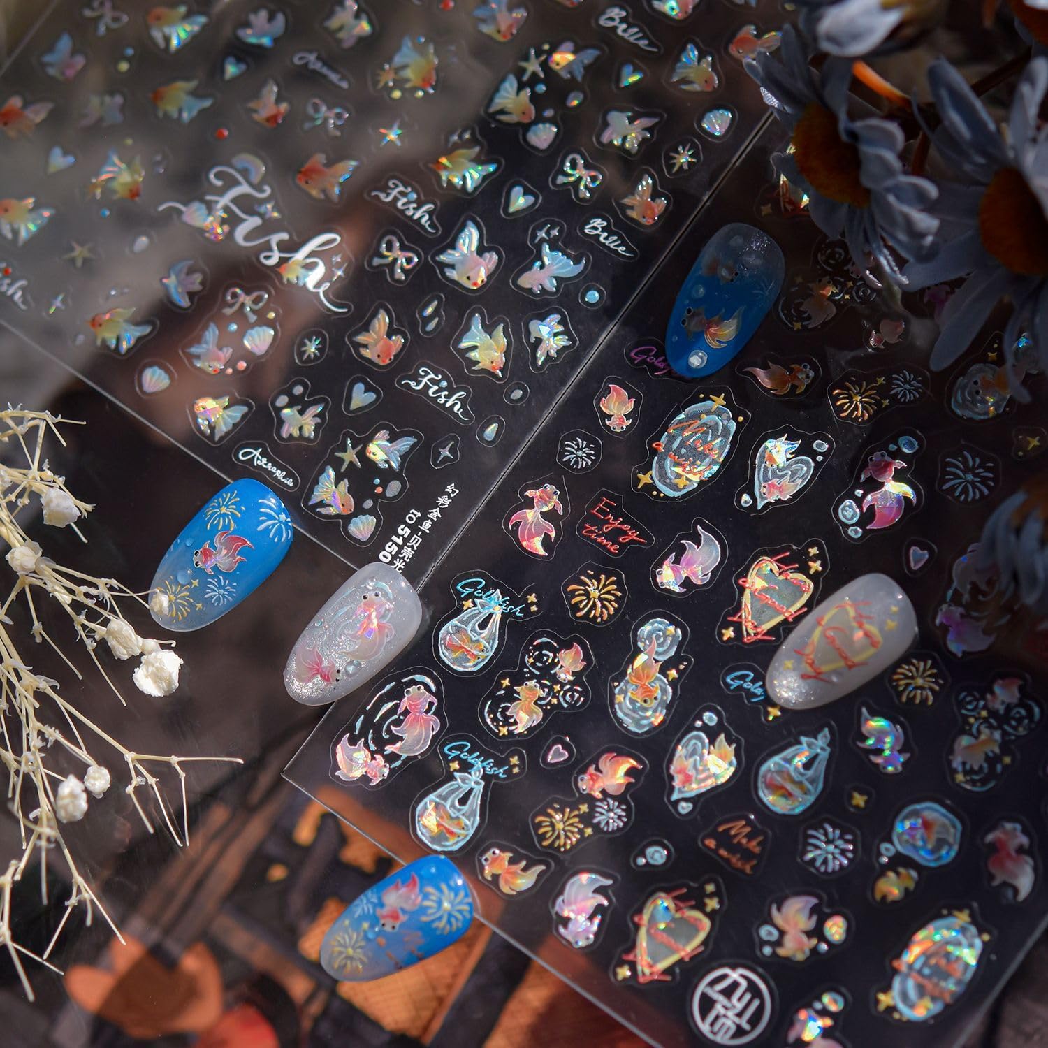 - Summer Nail Art Decals: 1 sheet of 5D embossing goldfish theme nail stickers give people an intuitive and advanced exquisite feeling. Shinny koi fish design 5D nail art decals are perfect for decorations for your spring summer nails.