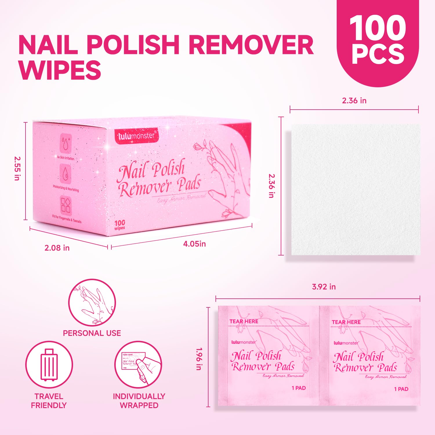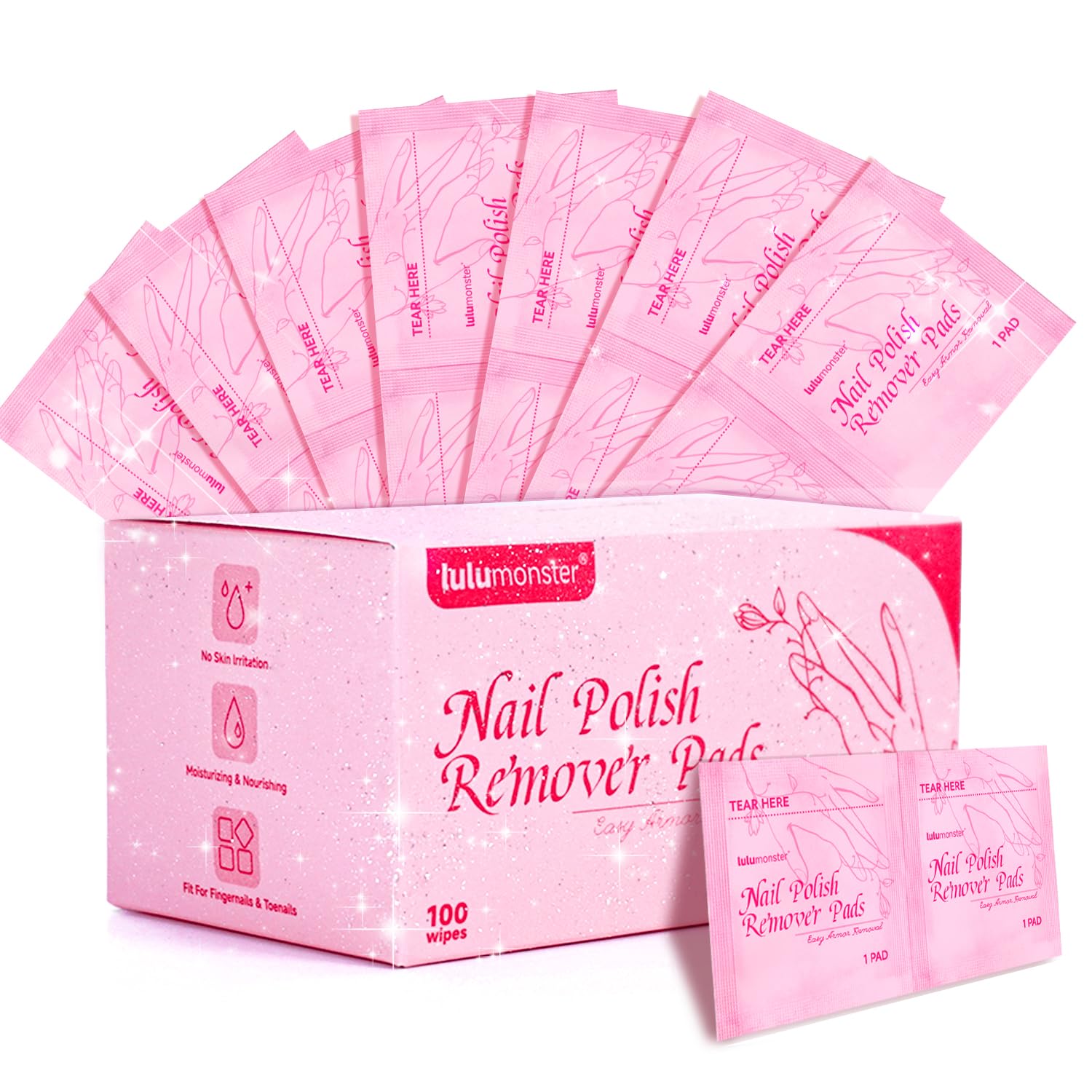 • 【 Non-Toxic Nail Polish Remover 】The LULUMONSTER nail polish remover wipes are individually packaged and fully soaked with nail polish remover, making them easy to use. Nail polish remover pads effectively remove polish without causing damage or dryness, perfect for sensitive skin