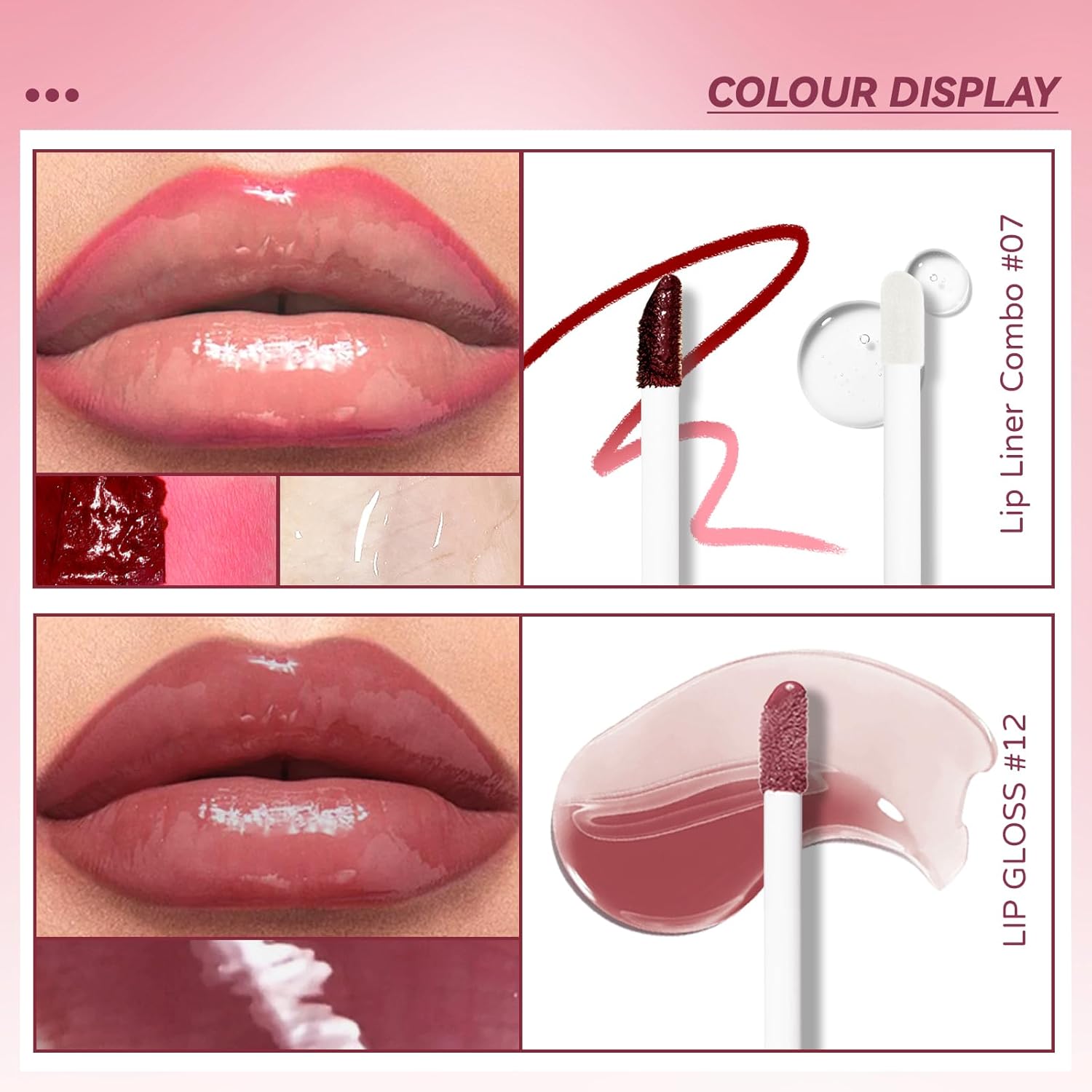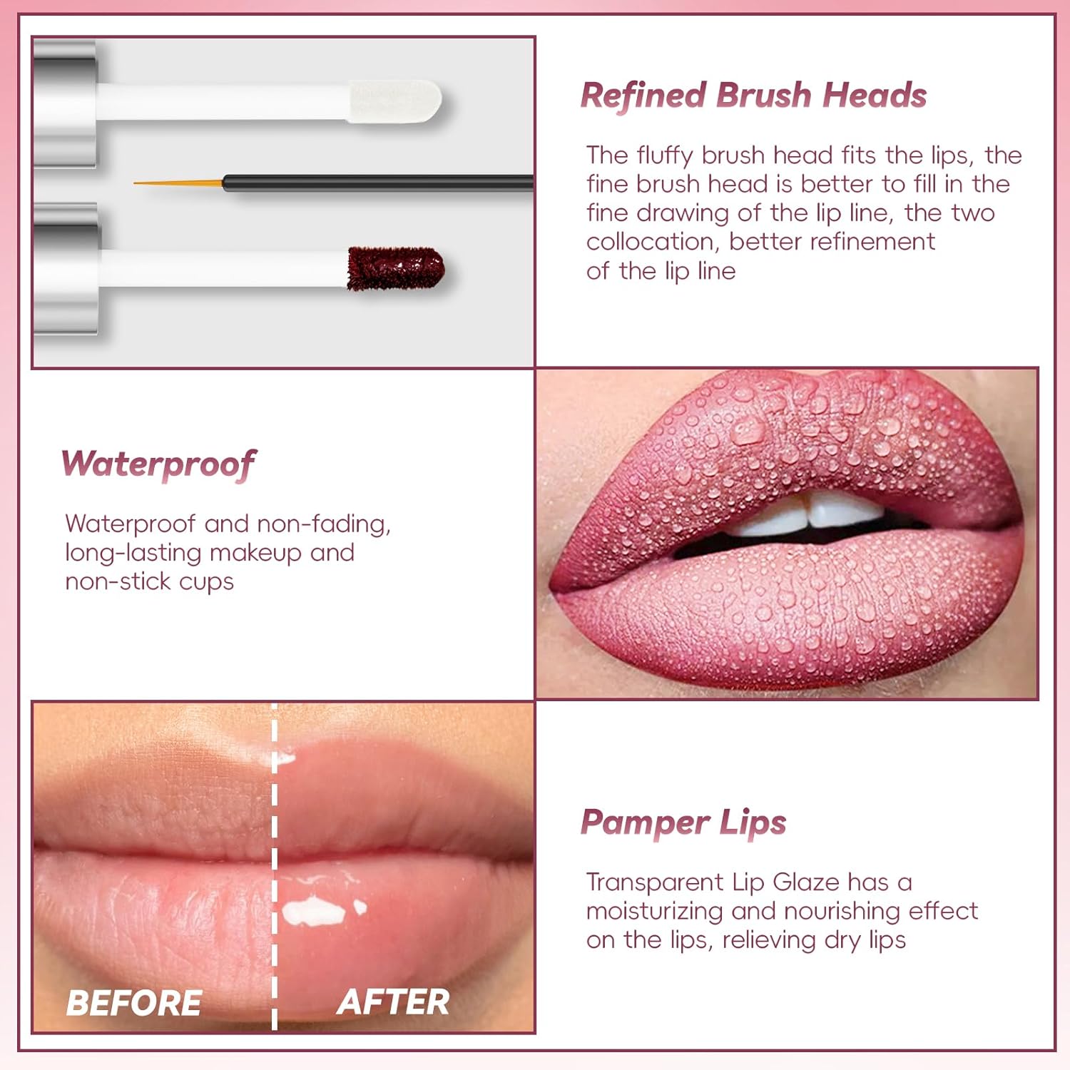 Dual-Ended Peel Off Lip Stain Liner, Long Lasting Waterproof Peel Off Lip Liner Tattoo with Nourishing Clear Gloss Combo Set, Transfer-Proof Non-Stick Cup Shiny Lips Tint Lipstick Makeup07