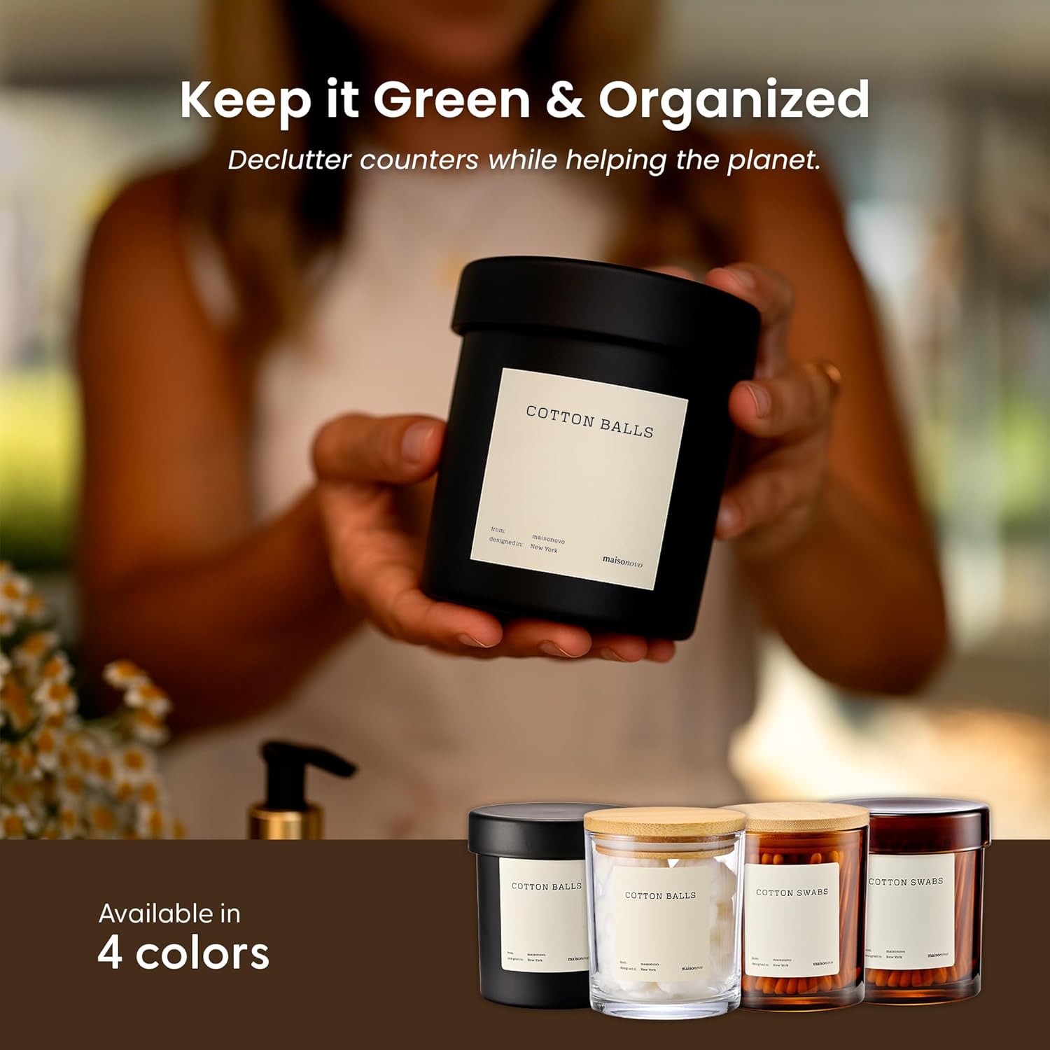 - Save Space on Your Countertop: You can store more in less space with jars that are compact yet roomy enough for daily essentials with our cotton ball and qtip holder set