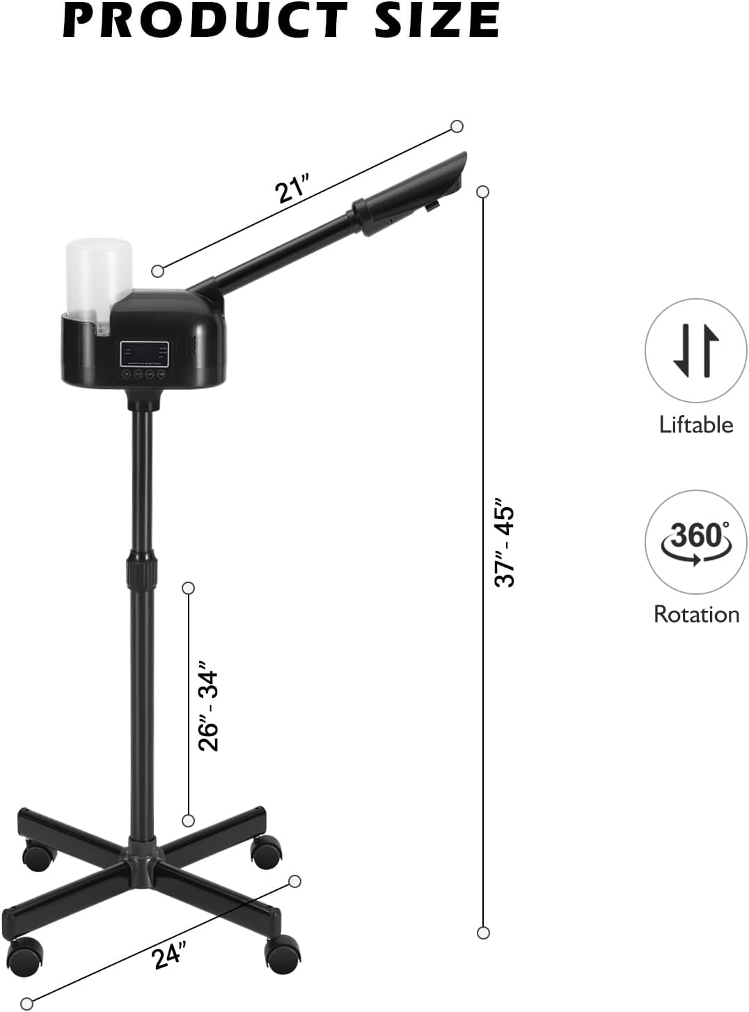 - 【Adjustable Arm & Spray Nozzle】Easily direct steam where you want it. With its swiveling spray arm and adjustable height, it's perfect for both barbershop customers and spa beds