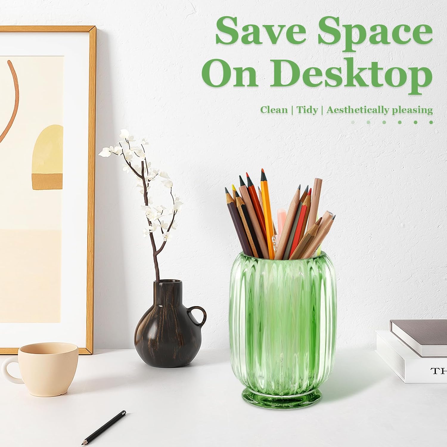 Makeup Brush Holder, Thick Glass Makeup Brush Organizer Cup, 4.8" Tall for Vanity Hair Brush Holder Brushes Storage, Makeup Brush Holder Organizer organizador de brochas de maquillaje Crystal Green