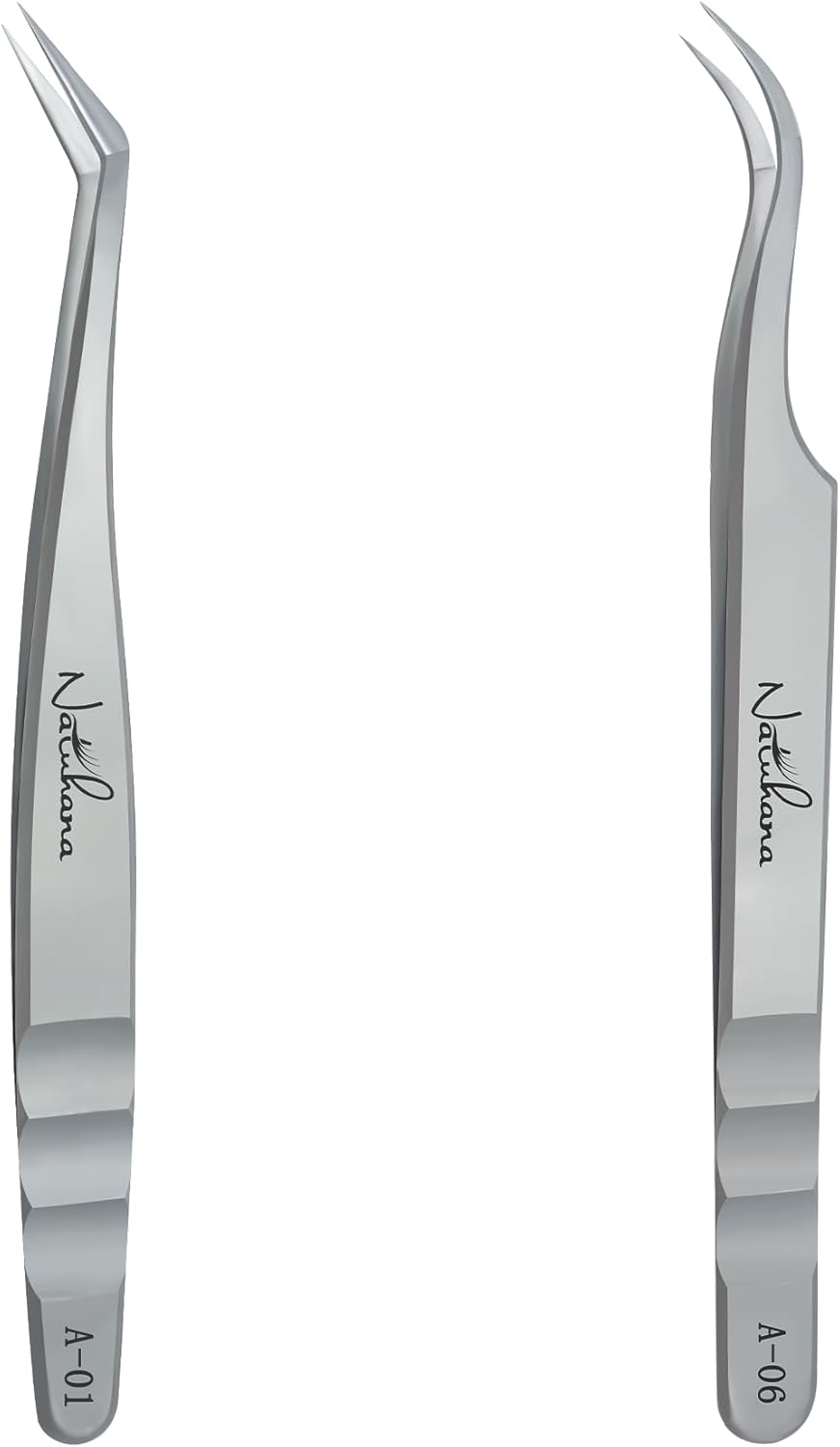 High Precision Lash Tweezers for Individual and Volume Eyelash Extensions Premium Stainless Steel Curved Fiber Tip Professional Isolation Tweezer