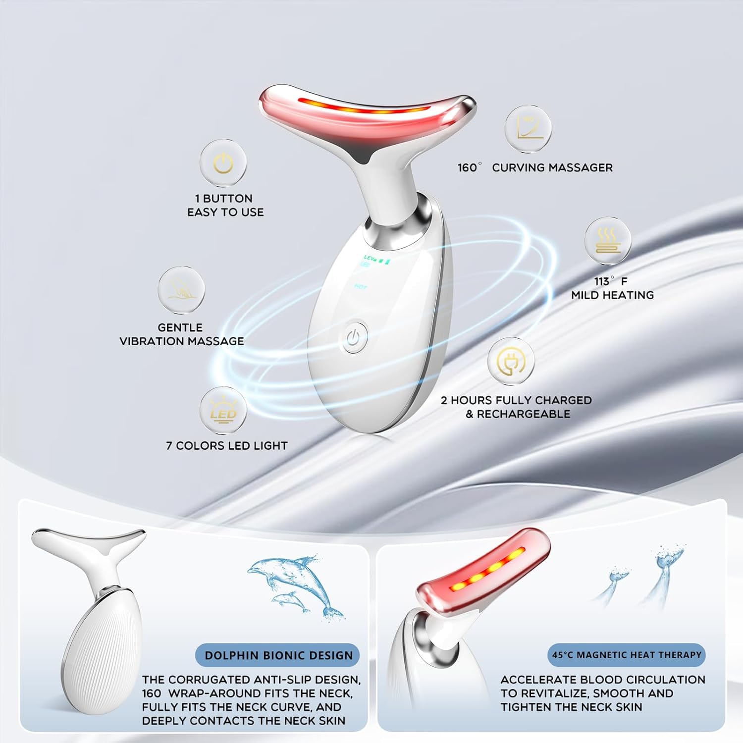 - 【7-in-1 SKIN CARE】This 7-in-1 face massager has 7 different LED light modes , which unveil a truly beautiful glow, maintain a healthy and radiant complexion, reduce double chins