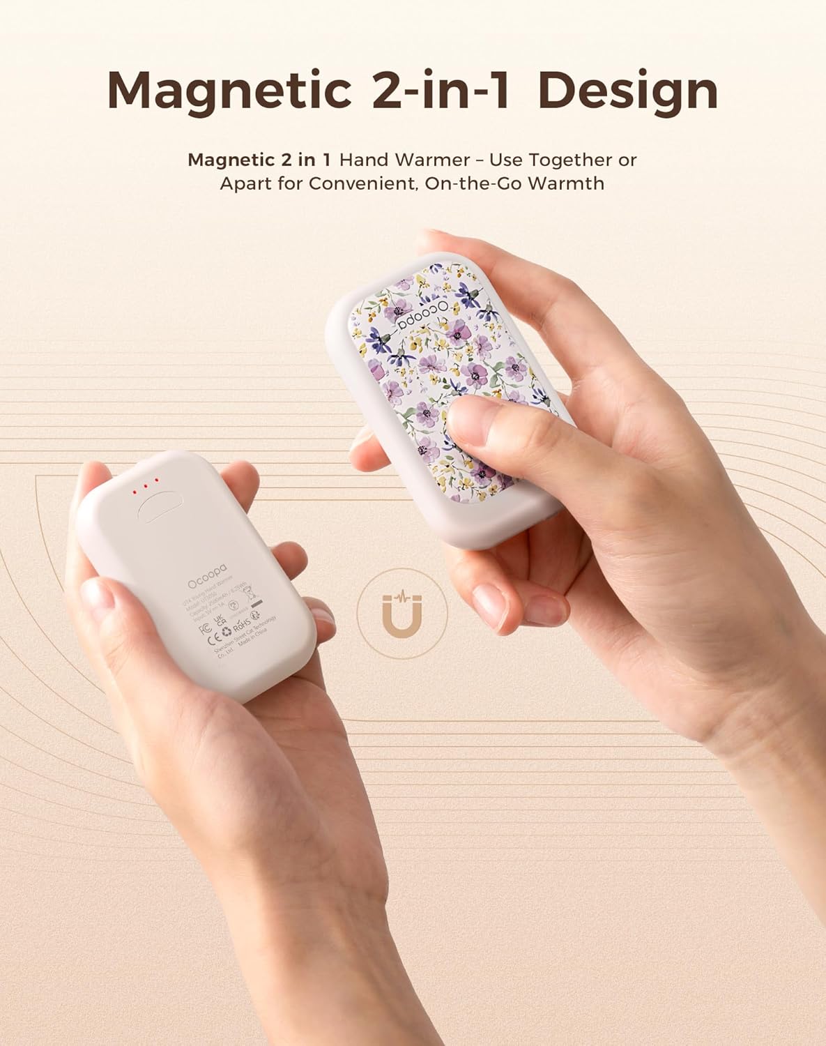 OCOOPA AI Magnetic Hand Warmers Rechargeable 2 Pack, 5000mAh Ultra-Thin Electric Glove Heater Handwarmer,UL Certified, Men Women Gifts for Christmas,Birthday,Winter Essentials,UT4 Young