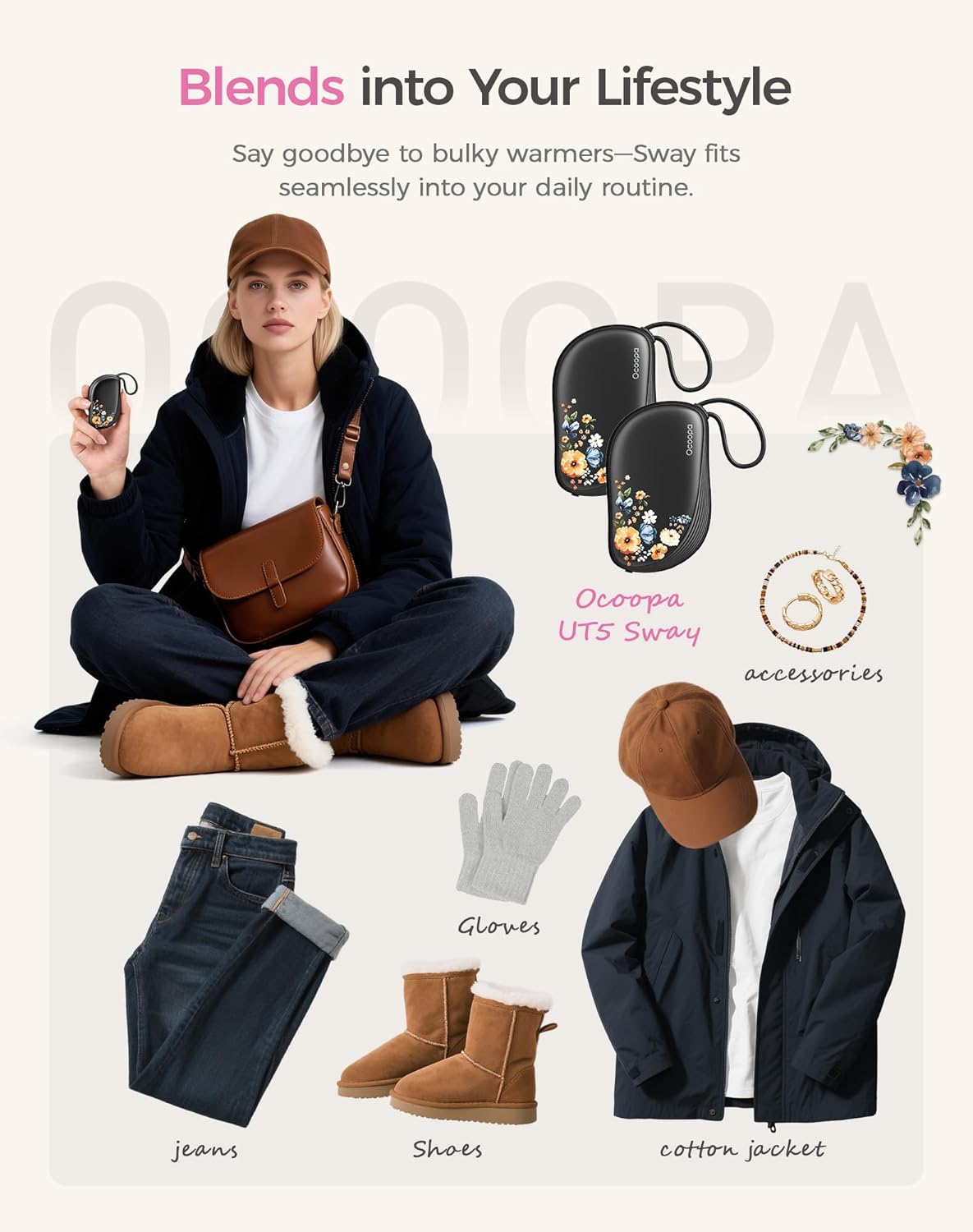 - Inspired by the Comb, Built for Warmth: Inspired by the graceful curves of a royal comb, the UT5 Sway hand warmers blend timeless design with modern heating technology. Heats up in just 3 seconds and delivers steady, single-sided warmth for up to 6 hours with three heat levels. No more bulky or disposable warmers—just compact comfort that goes where you go.