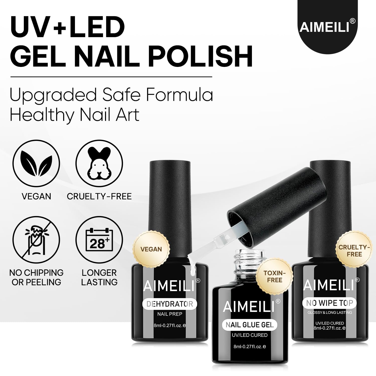 - Easy Nail Extension Gel Kit Set: Extend your nails with AIMEILI Nail Glue Gel, Top Coat Gel Nail Polish, and Nail Prep Dehydrator. Prepares the nail for strong adhesion, enjoy the fun of DIY! Let the beauty gift sets work its magic with you