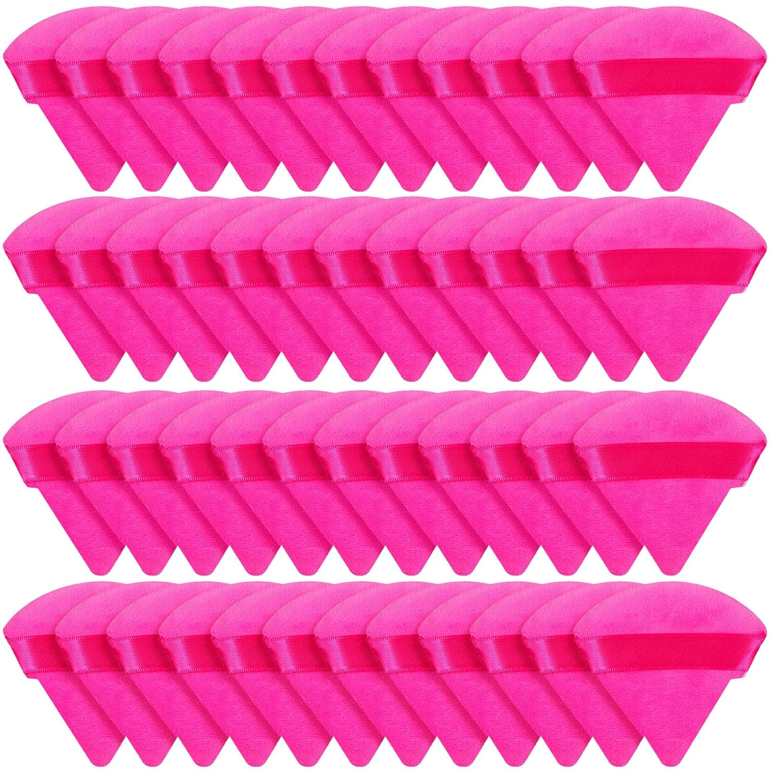 Suclain 48 Pcs Velour Triangle Powder Puff Soft Velour Makeup Puff for Face Powder Makeup Triangle Sponges for Wet and Dry Cosmetic Foundation Loose Mineral Body Tool (Pink)