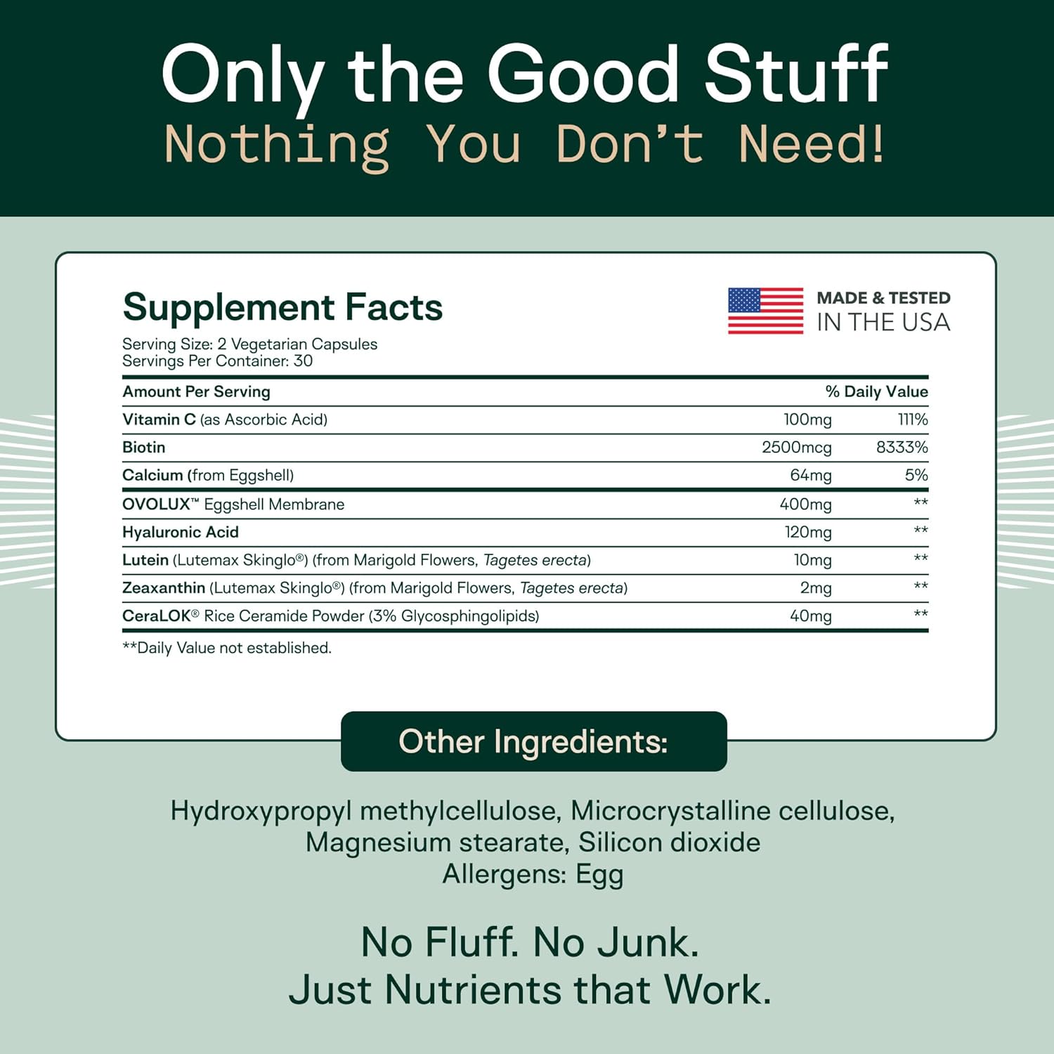 - STRENGTHEN HAIR & NAILS: Biotin and eggshell membrane collagen hair and nails vitamins for women and men provide the essential building blocks for keratin and collagen production. This support thicker hair, stronger nails, and firmer, more resilient skin.