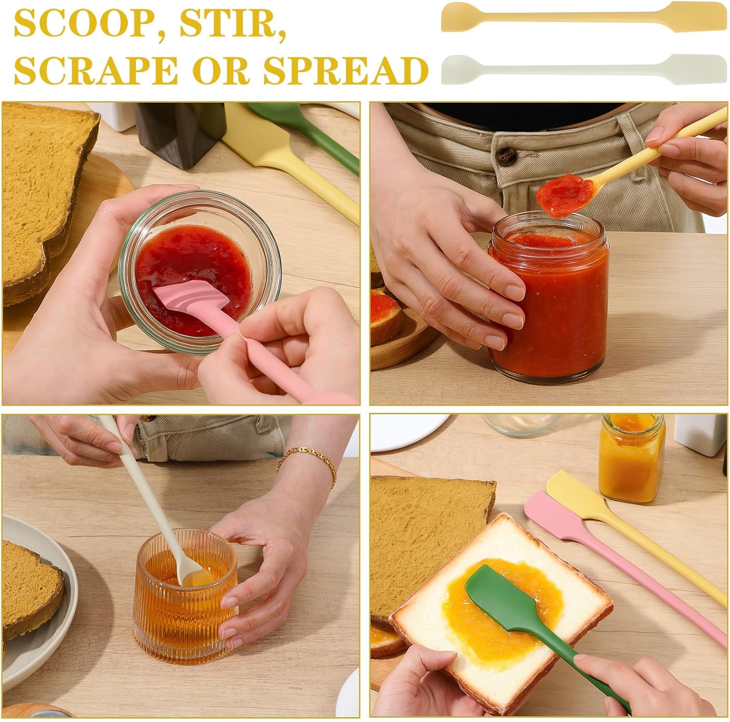 - 【High-Quality Silicone】: Made from food-grade silicone, these jar spatulas are heat-resistant and safe for non-stick cookware. Ideal for baking, cooking, and as makeup spatulas mini for beauty routines