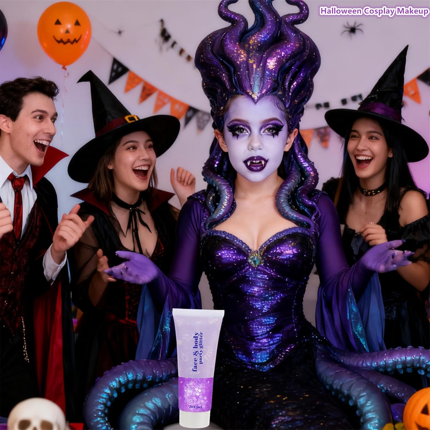 - Easy-on,easy-off:Has a stick adhesive,goes on smoothly with a quick swipe of a finger or brush after easy squeezing out.Can be applied over face paint designs or body shimmer without smearing them.For ultimate glitter effect apply in layers letting each layer dry before applying the next.Easily remove with soap and water.