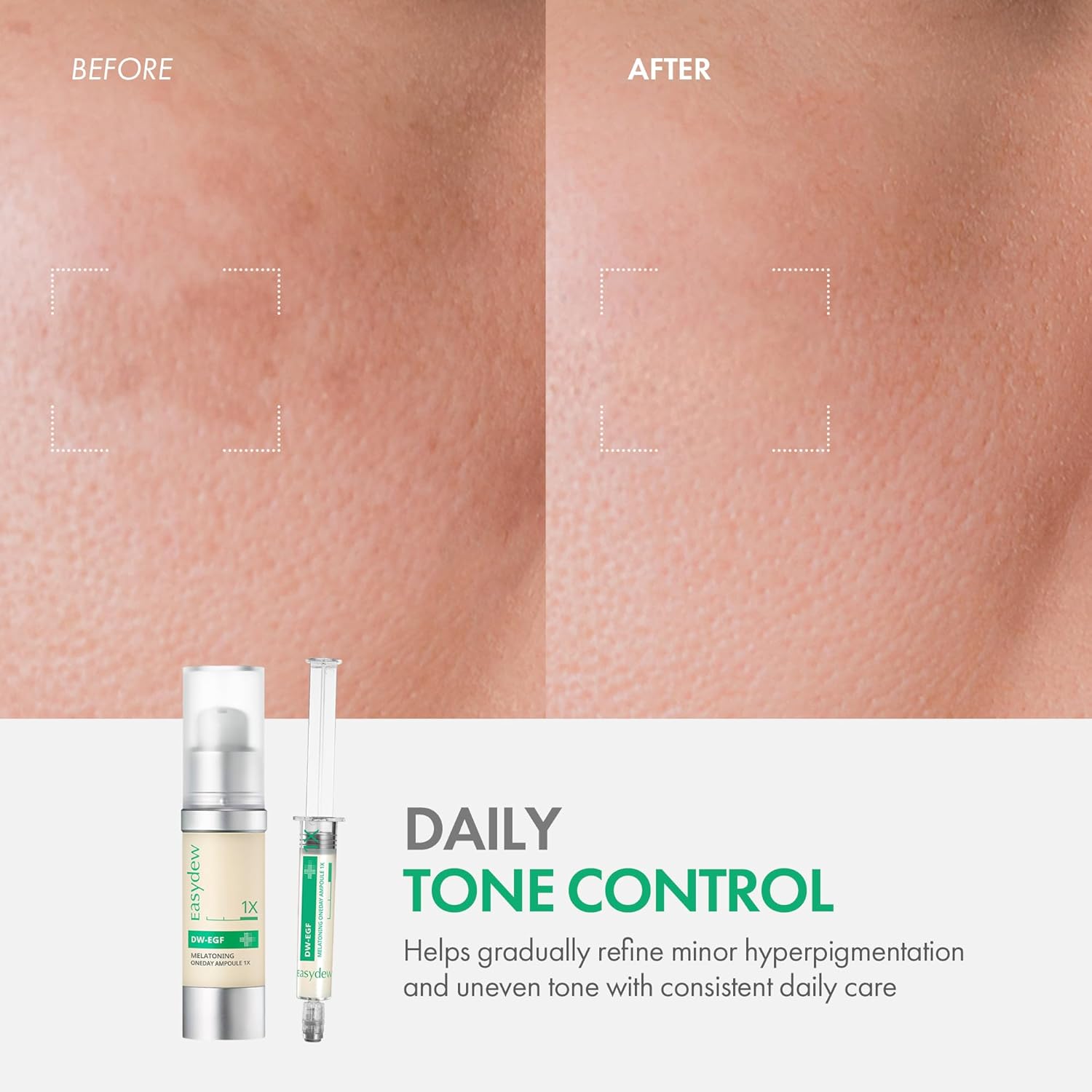 - VISIBLE RESULTS ON STUBBORN CONCERNS. Powered by DW-EGF Peptide, refined to 99%* purity for skincare use, this advanced Korean serum ampoule provides nourishment that supports a visibly refined appearance. With consistent use, skin looks clearer, smoother, and dull areas gradually regain a fresher look.