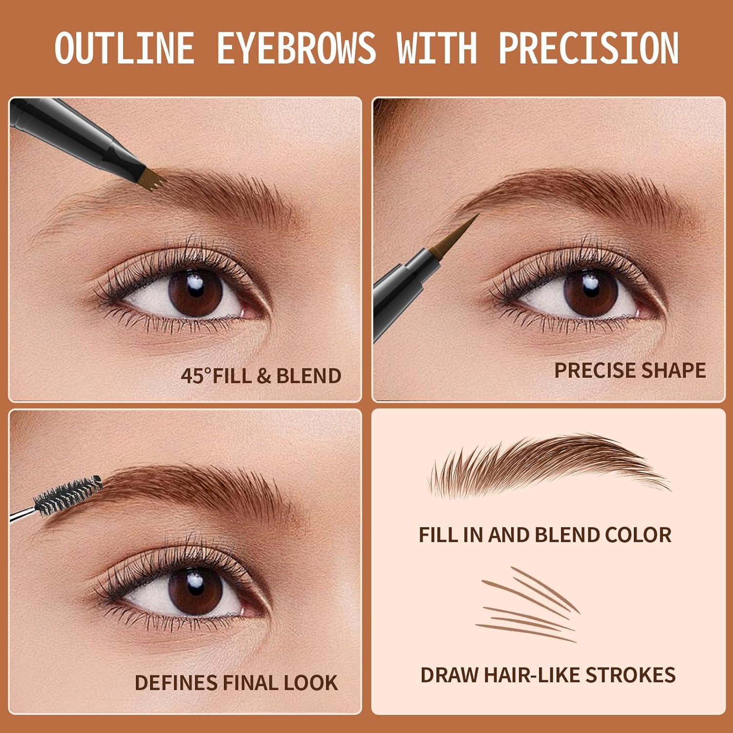 - 【Precise Filling Eyebrow Pencil】Say goodbye to sparse eyebrows! This eyebrow pencil features an ultra-fine micro blade design, a precise brush-tip to create tiny hair-like strokes, 4-fork-tip for filling in sparse areas, blend color. Creates natural fuller looking brows.